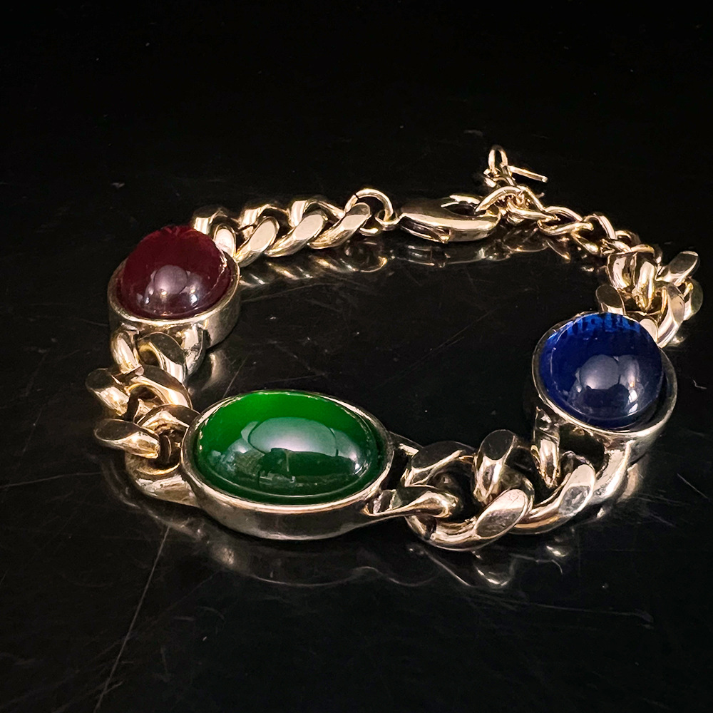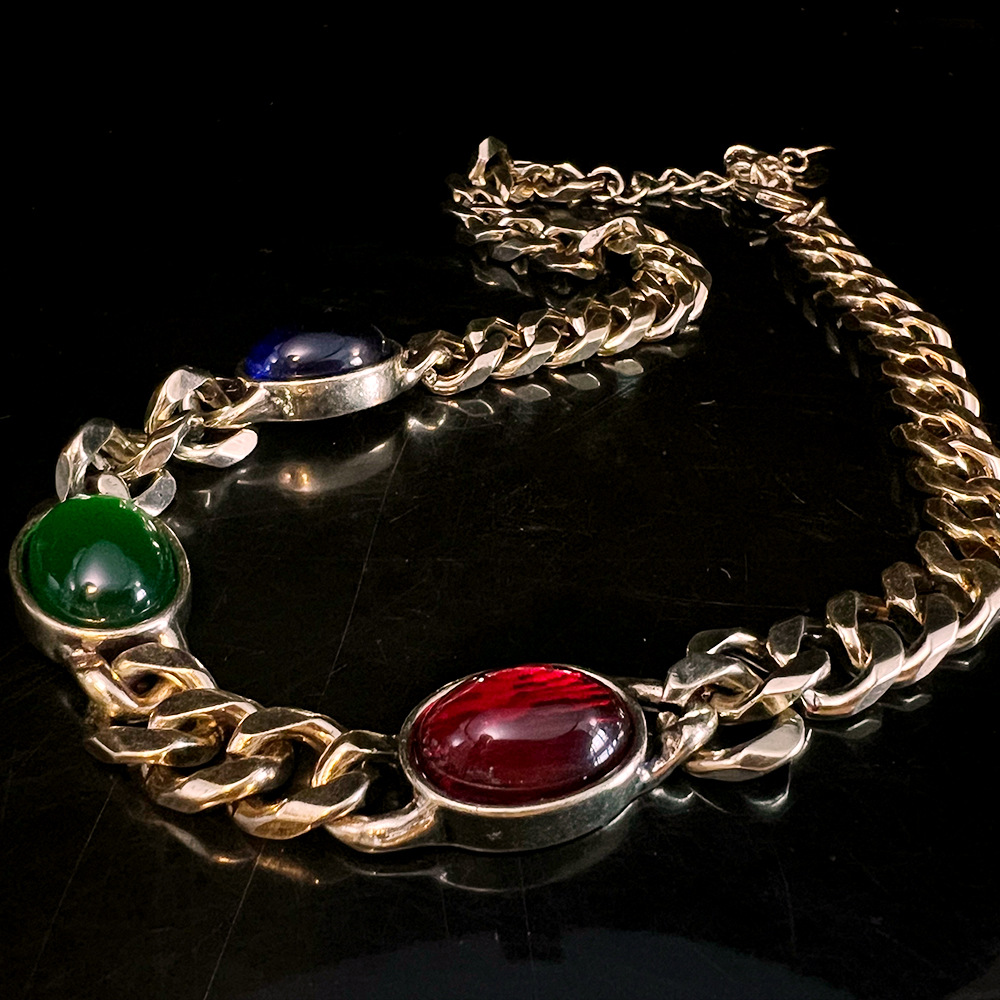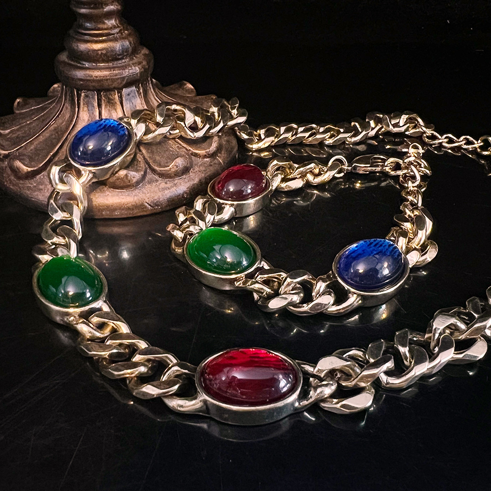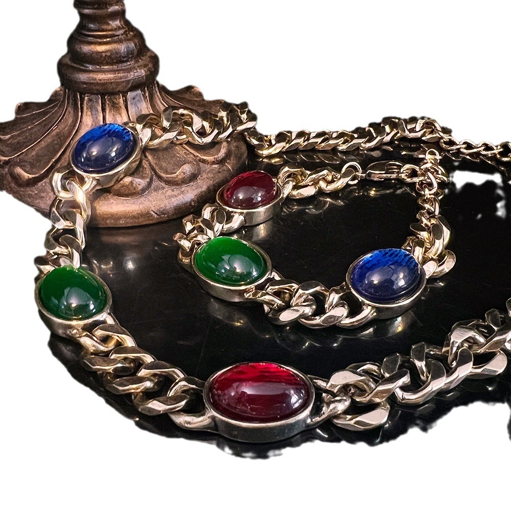 Cuba thick chain middle ancient jewelry suit color colored glaze versatile retro copper gold plated vintage necklace bracelet