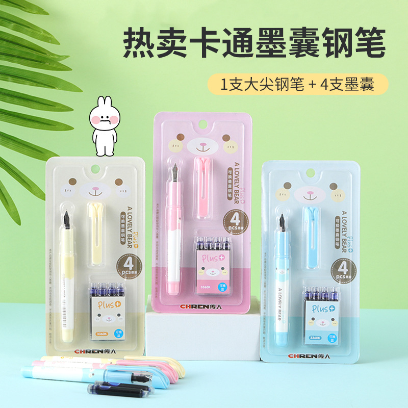 Color: Apricot cartoon six-color pen 7 pieces