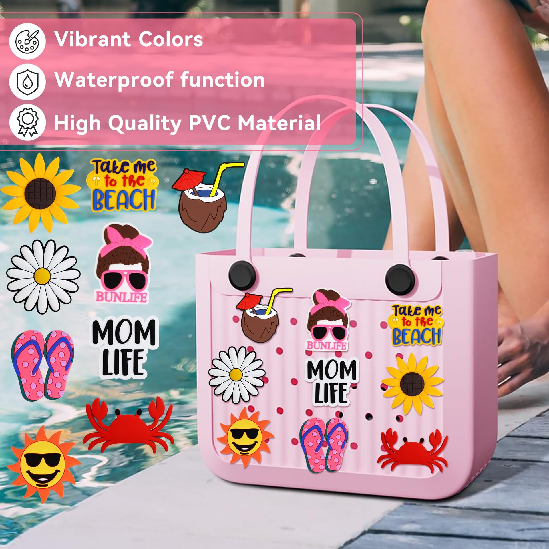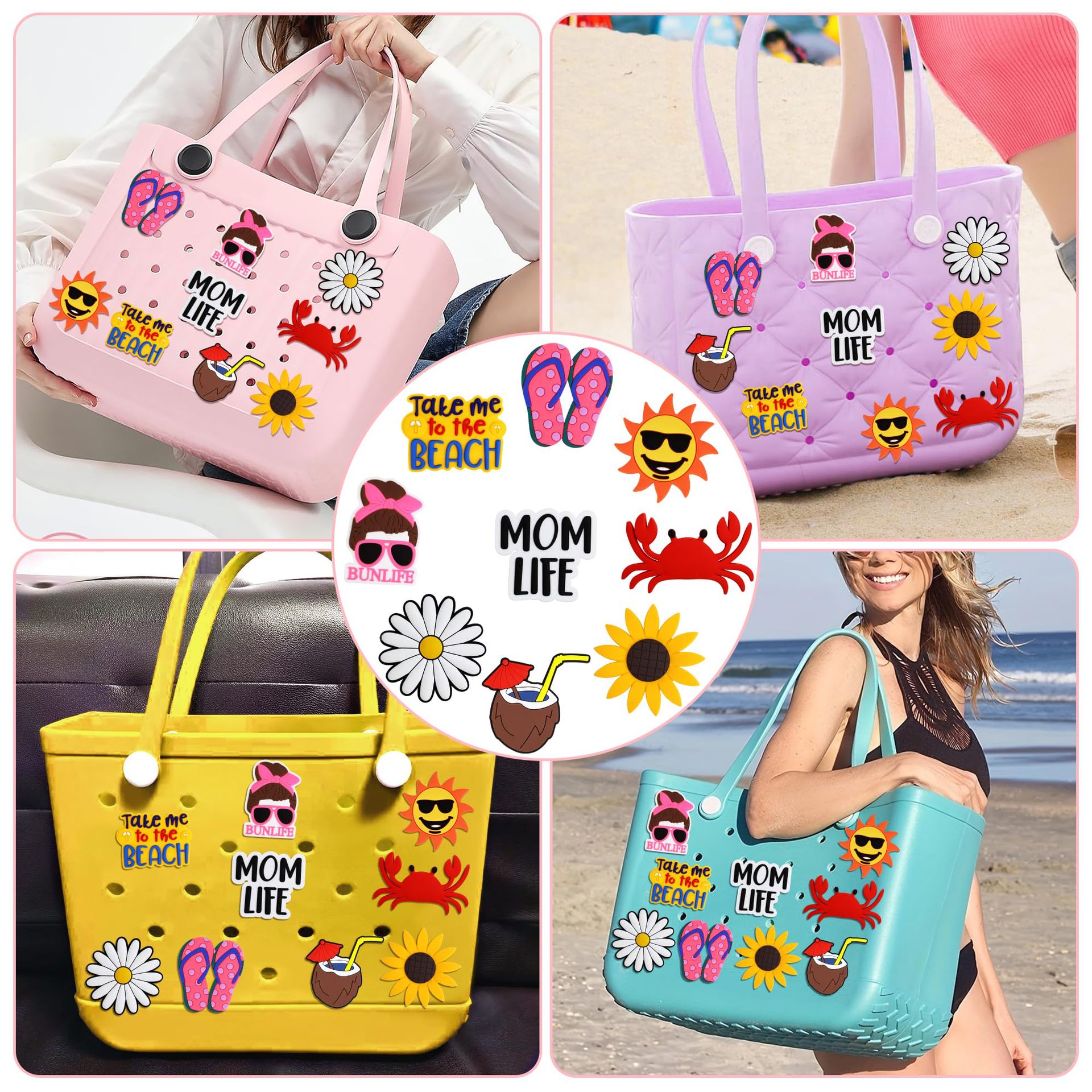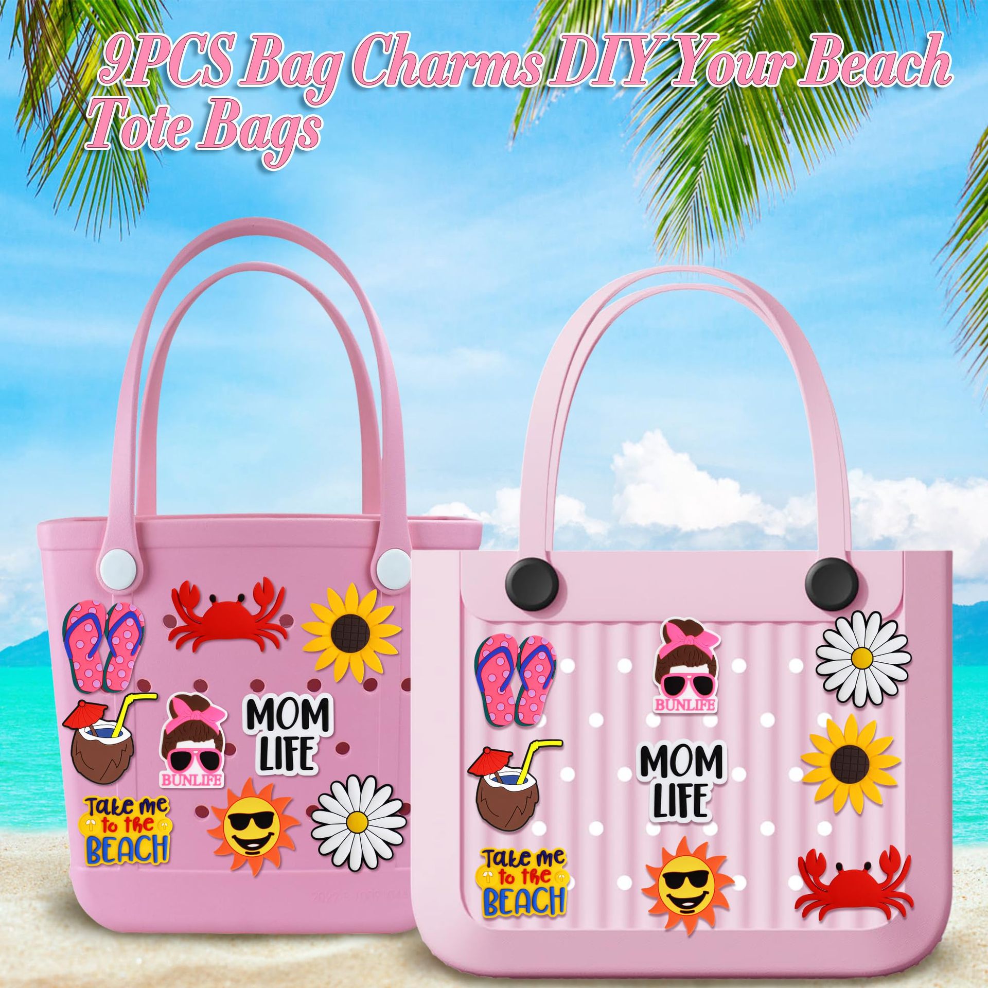 Bag Charms for Beach Bags Suitable for Boggbag Rubber Tote Bags, Hawaiian Summer Beach Style