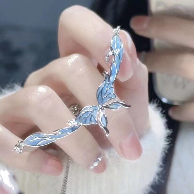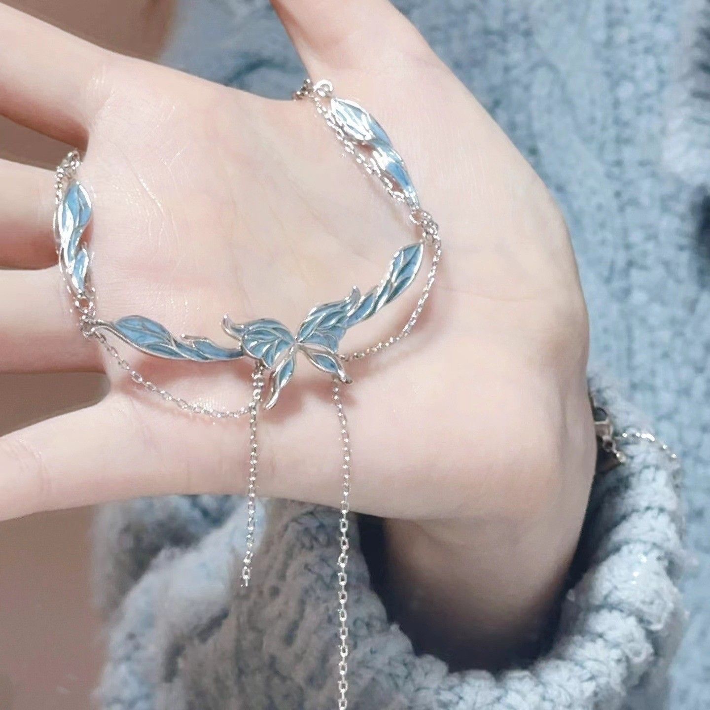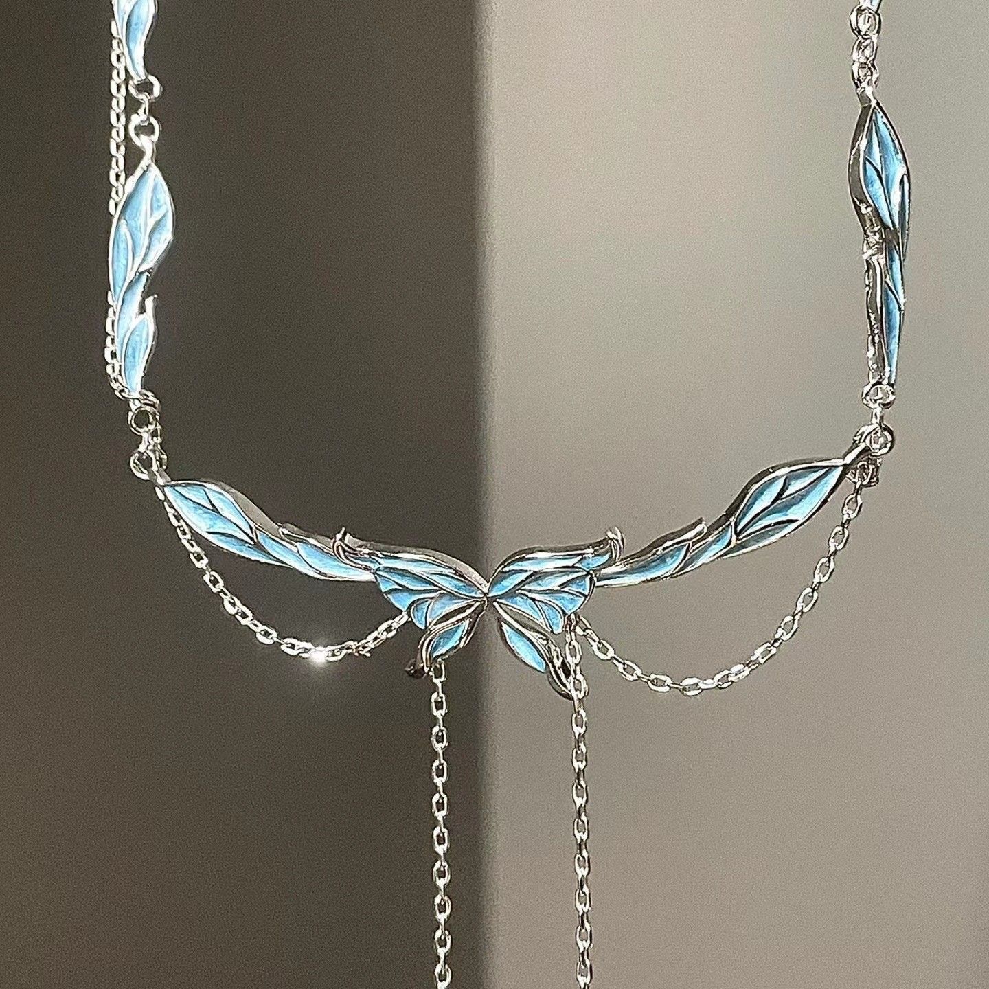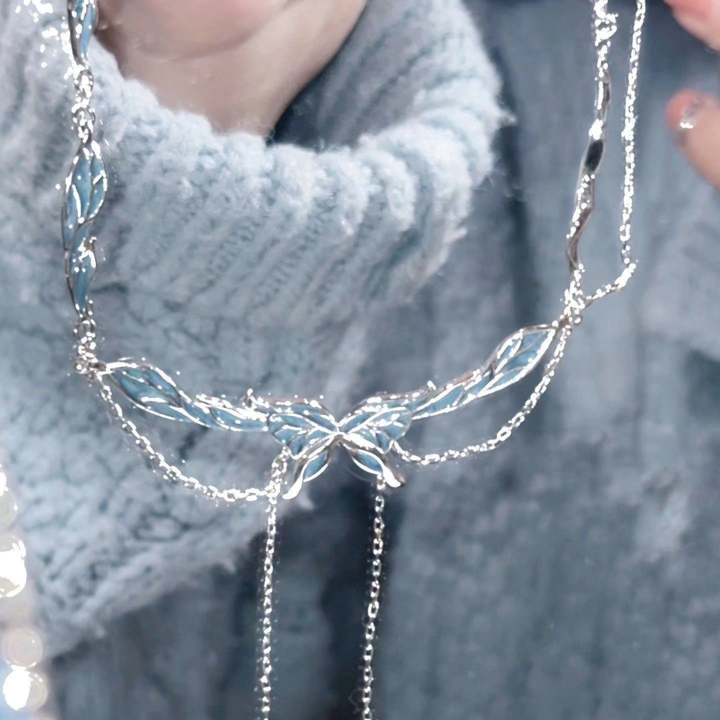 Butterfly Dream Girl's Heart Blue Butterfly Necklace Women's Niche Design High-grade Mori Princess White Clavicle Chain Accessories