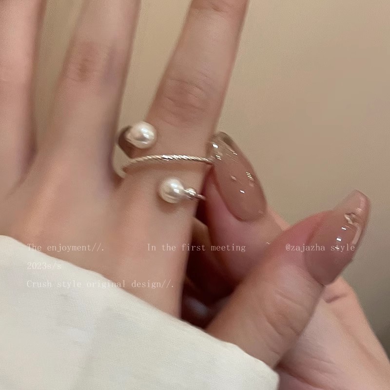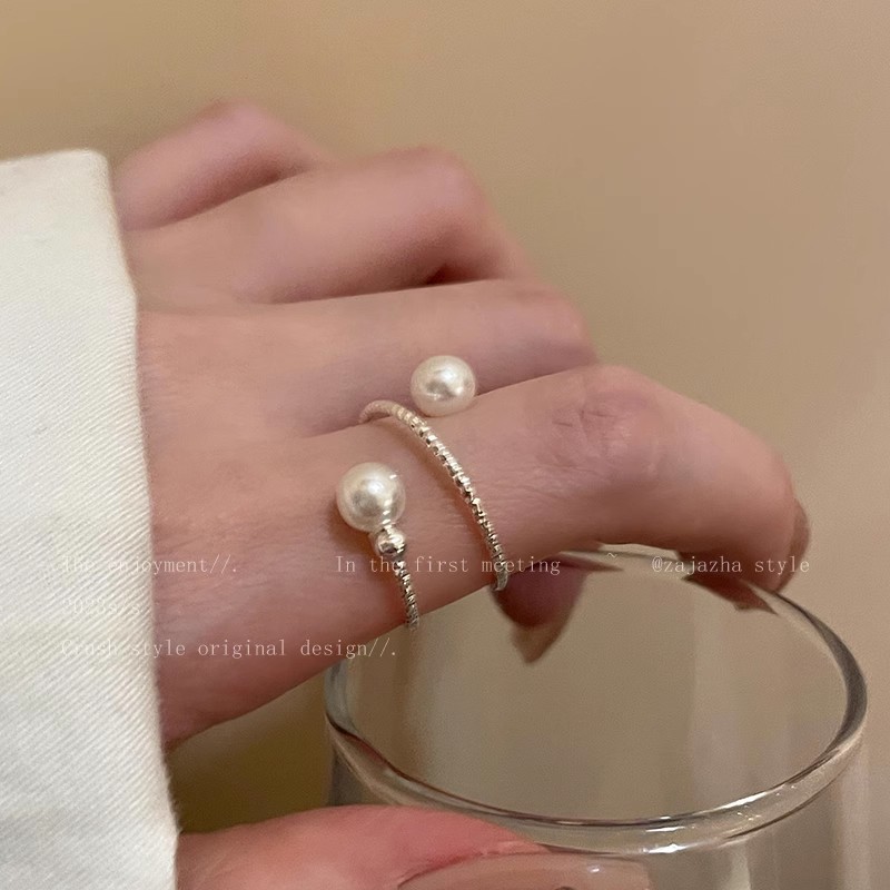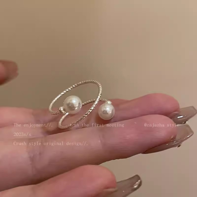 Multi-layer Wrap Pearl Opening Adjustable Ring Women's French Style Light Luxury Niche Design High-grade Sense Index Finger Ring