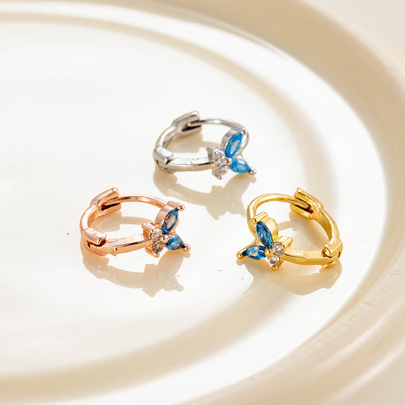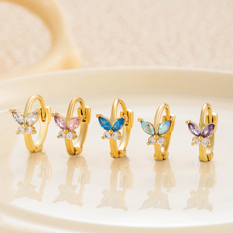 Henson Copper Zircon Fresh Butterfly Ear Buckle Earrings Advanced Sense Earrings