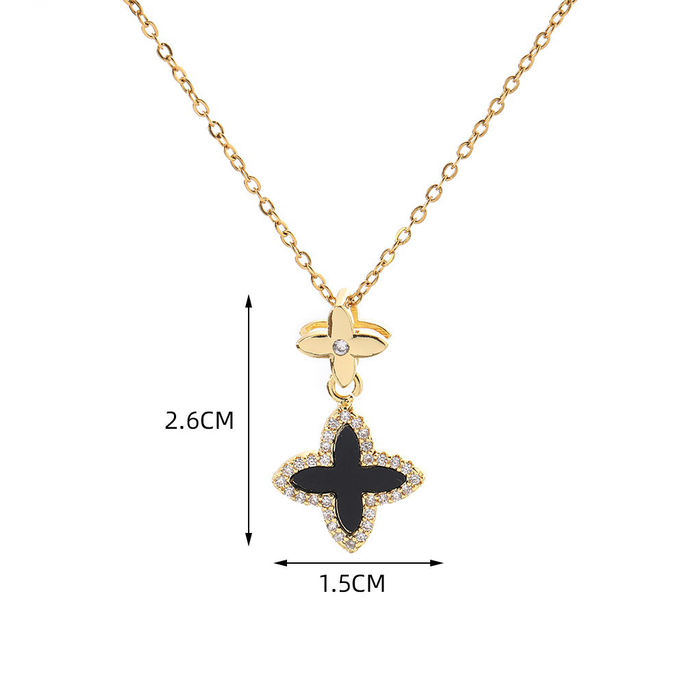 Color: Black four-leaf clover necklace (with chain)