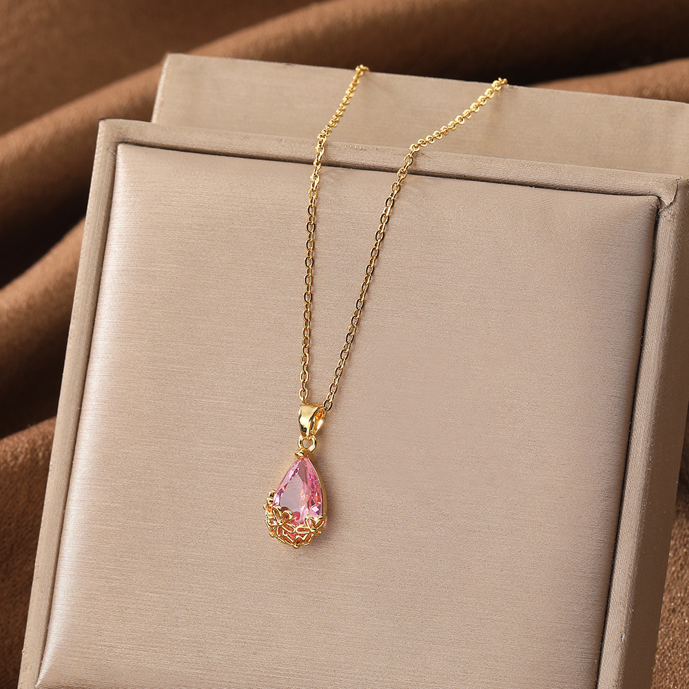 Color: Water drop pink gemstone necklace (with chain)
