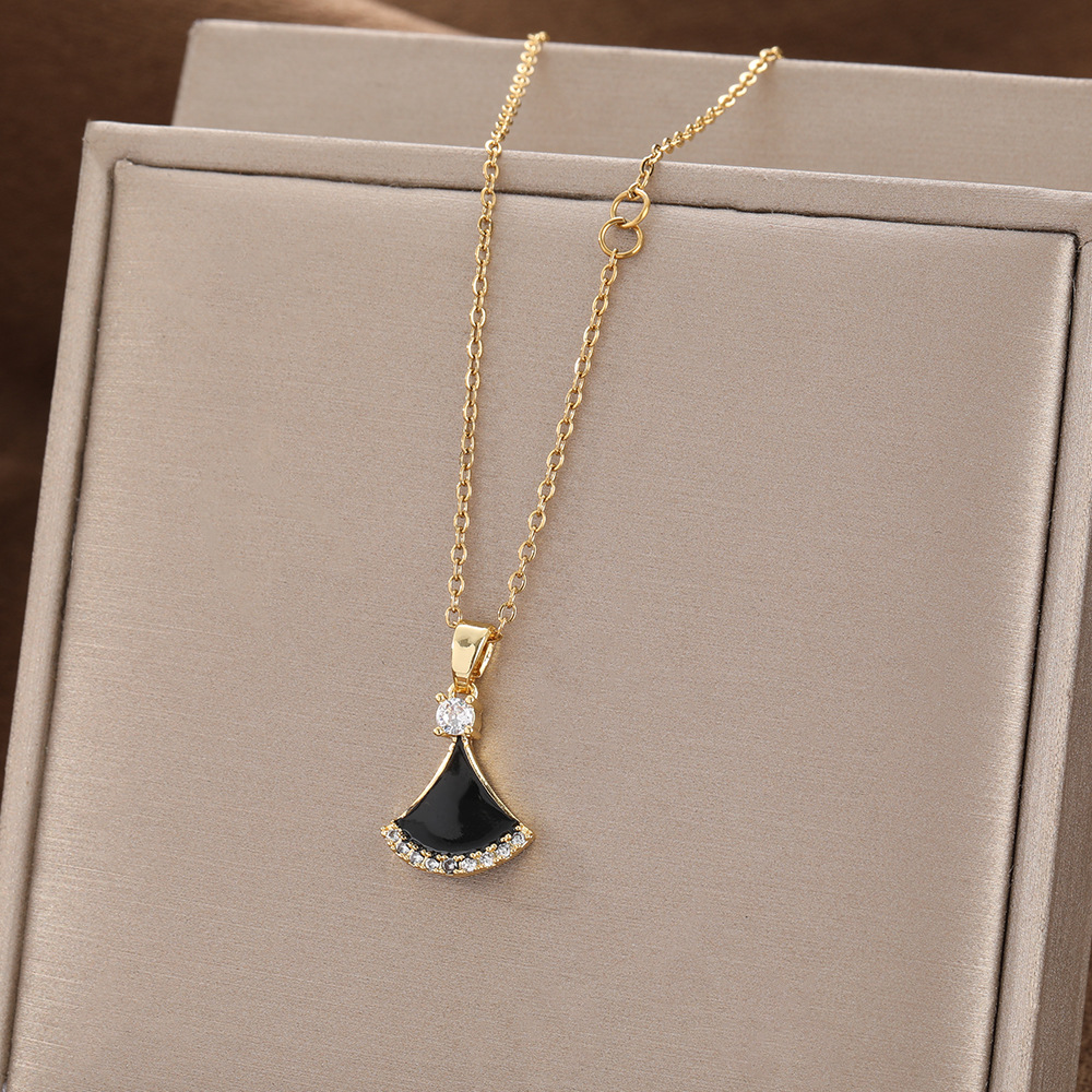 Color: Full zircon gold apricot leaf necklace (with chain)