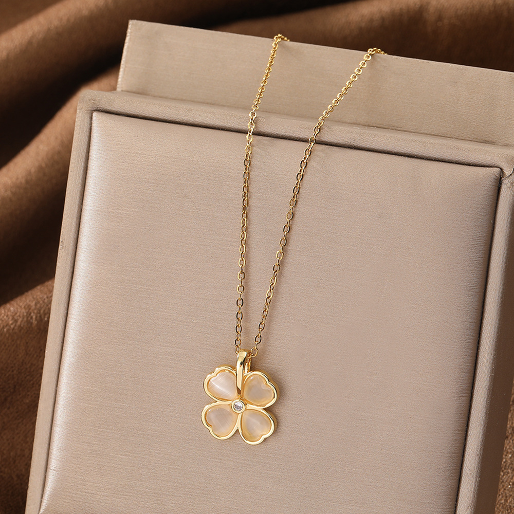 Color: Opal four-leaf clover necklace (with chain)