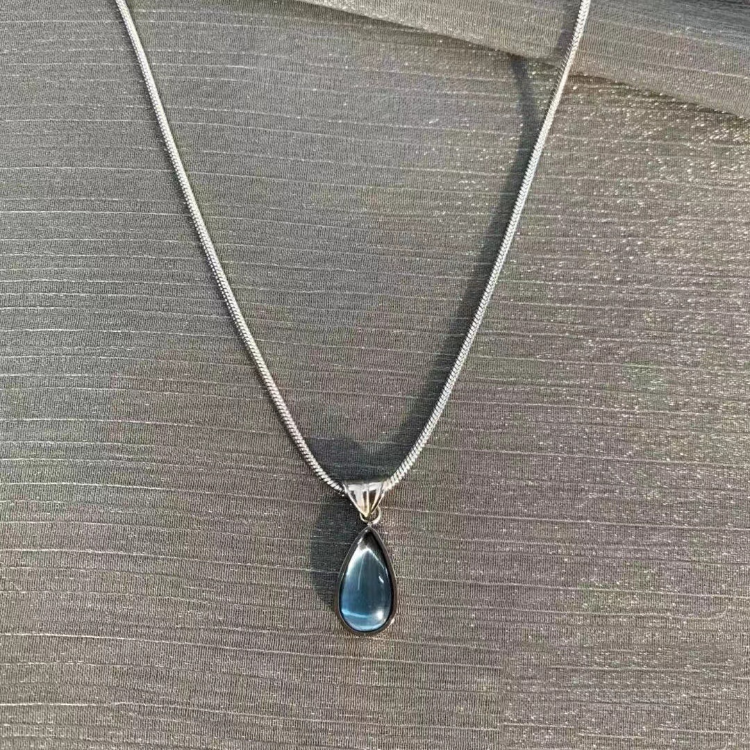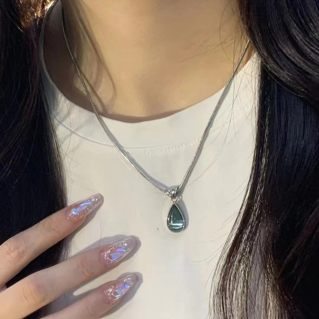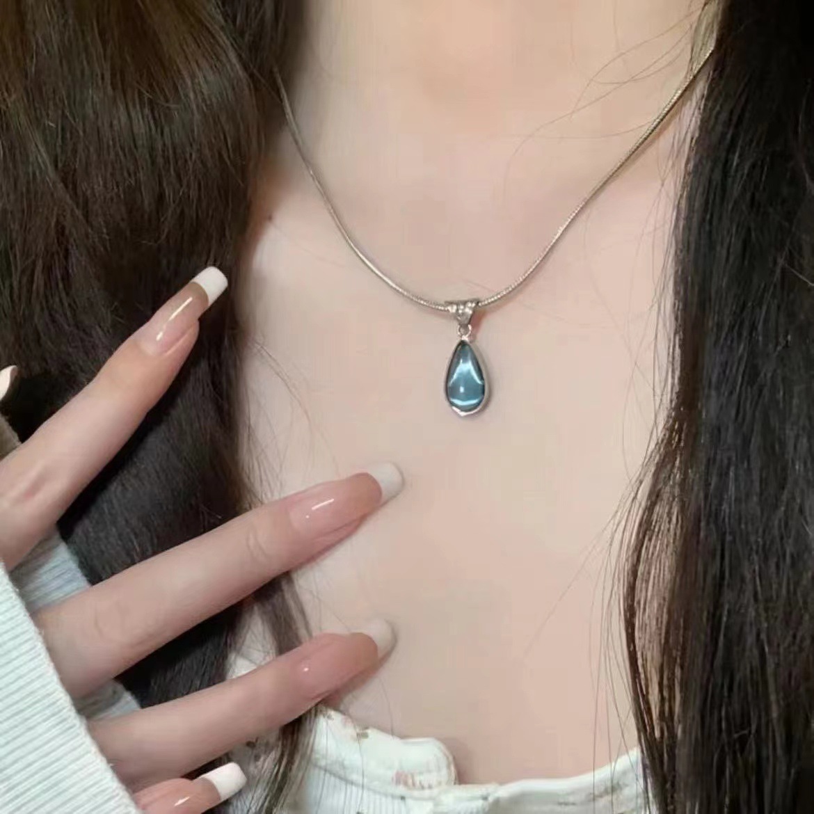 Blue Water Drop Pendant Necklace Women's Light Luxury Niche Design High-end Elegant French Retro New Chinese Style Clavicle Chain