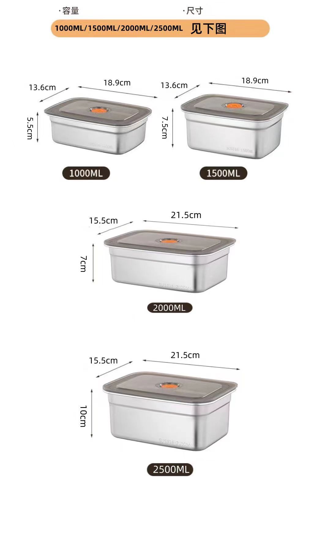 Specifications: 2 pieces [with cover] can be laser 316 or 304