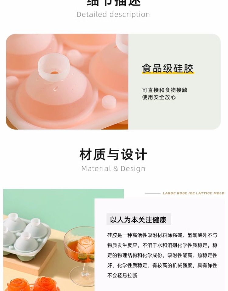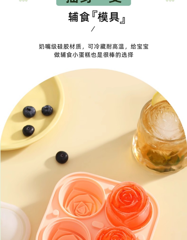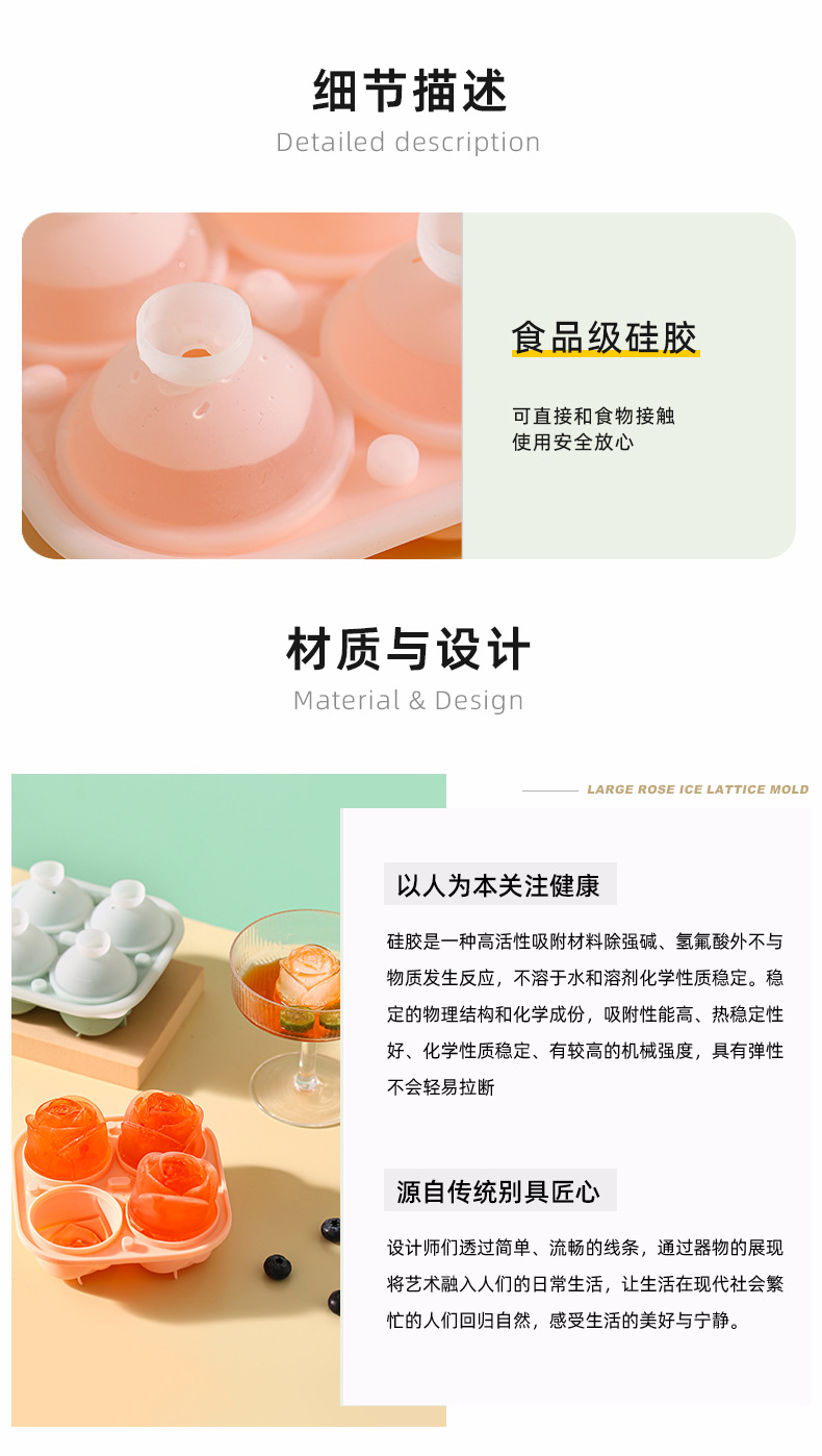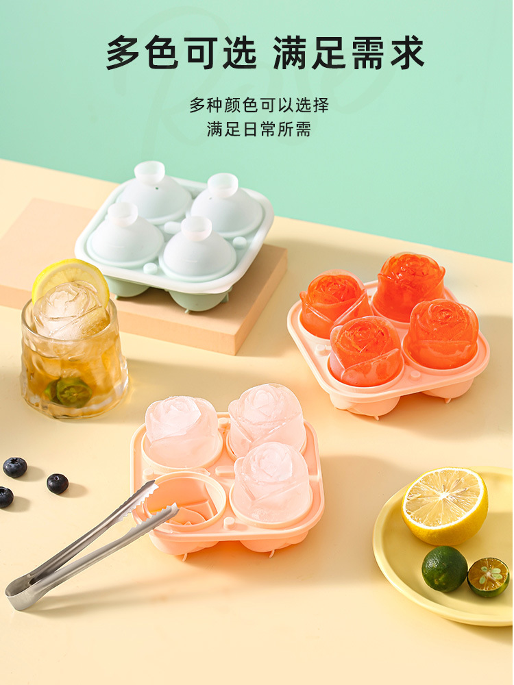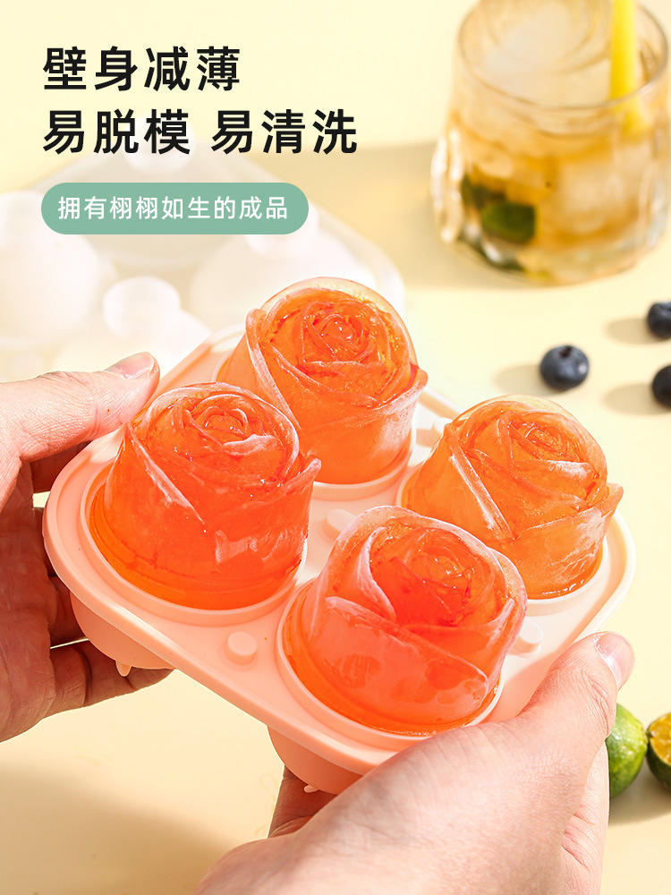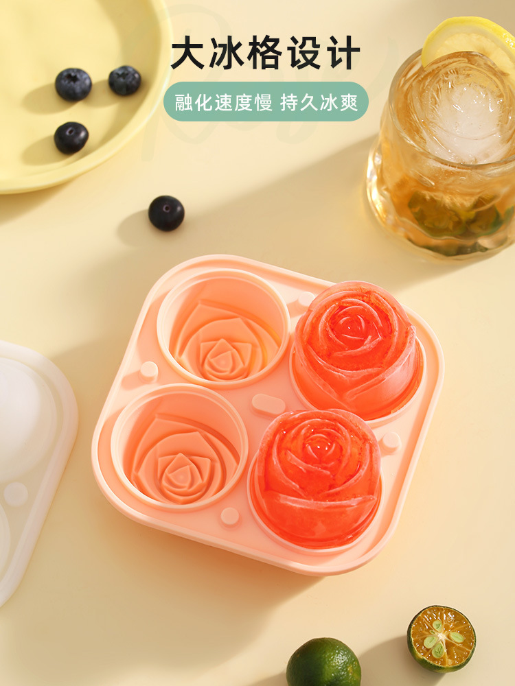 Rose Ice Cube Mold Household Food Grade Whiskey Ice Puck Frozen Ice Cube Artifact Silicone Large Ice Box Abrasives