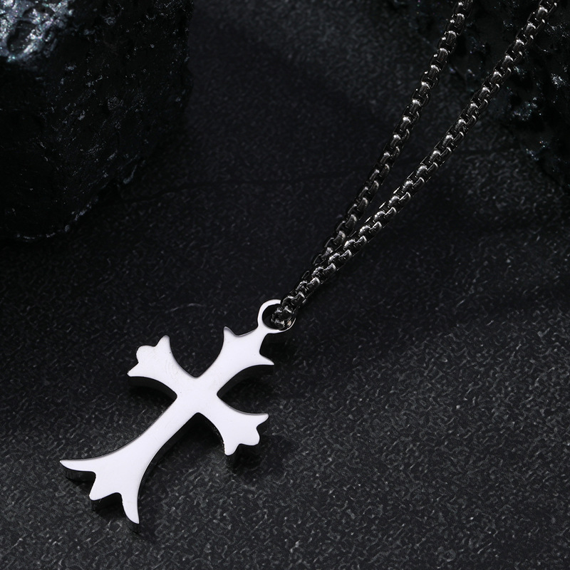 European and American Cross-border Titanium Steel Necklace Men's All-match Personalized Glow Cross Necklace Pendant Stainless Steel Jewelry