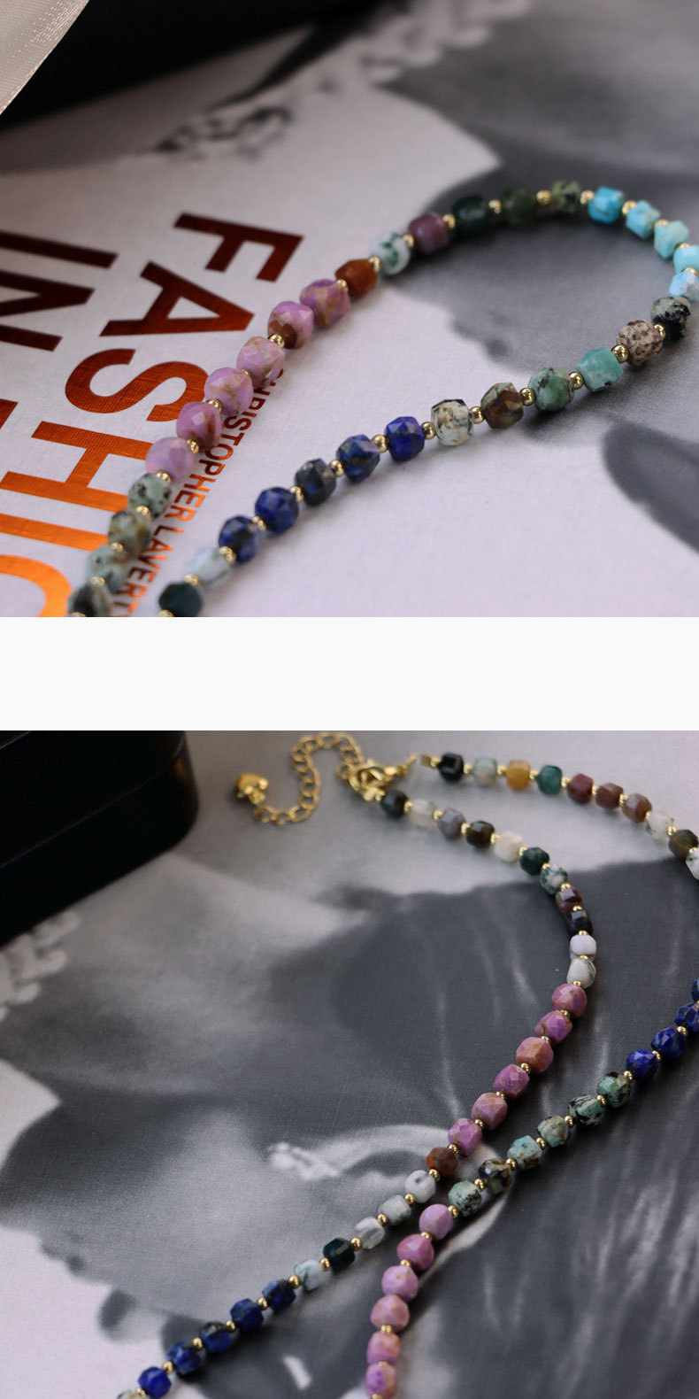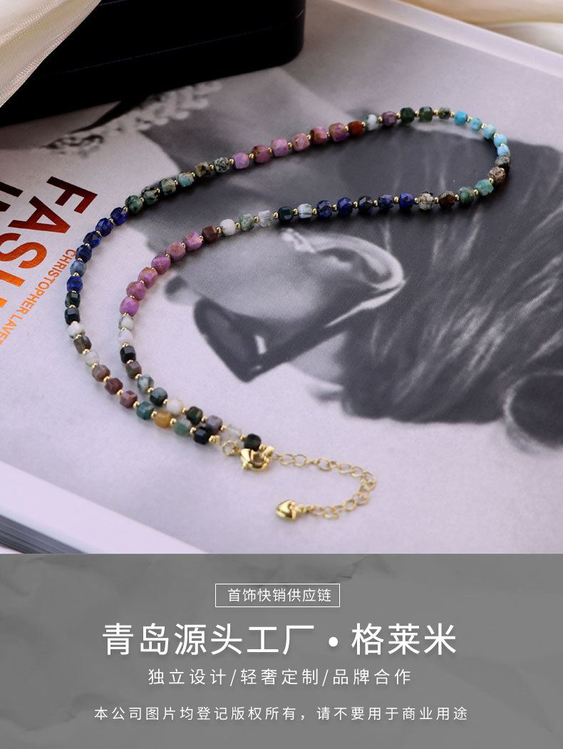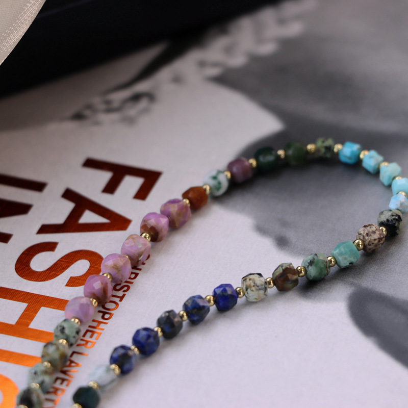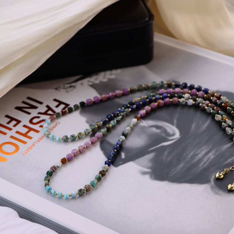 Niche Retro Bohemian Style Purple Mica Lapis Lapis Turquoise Indian Agate High-grade Necklace Clavicle Chain for Women