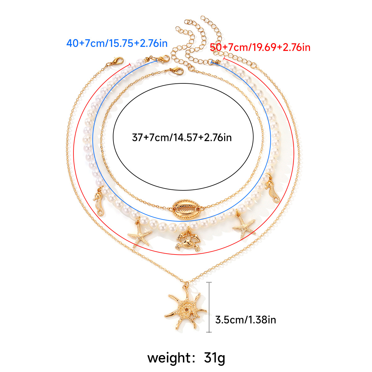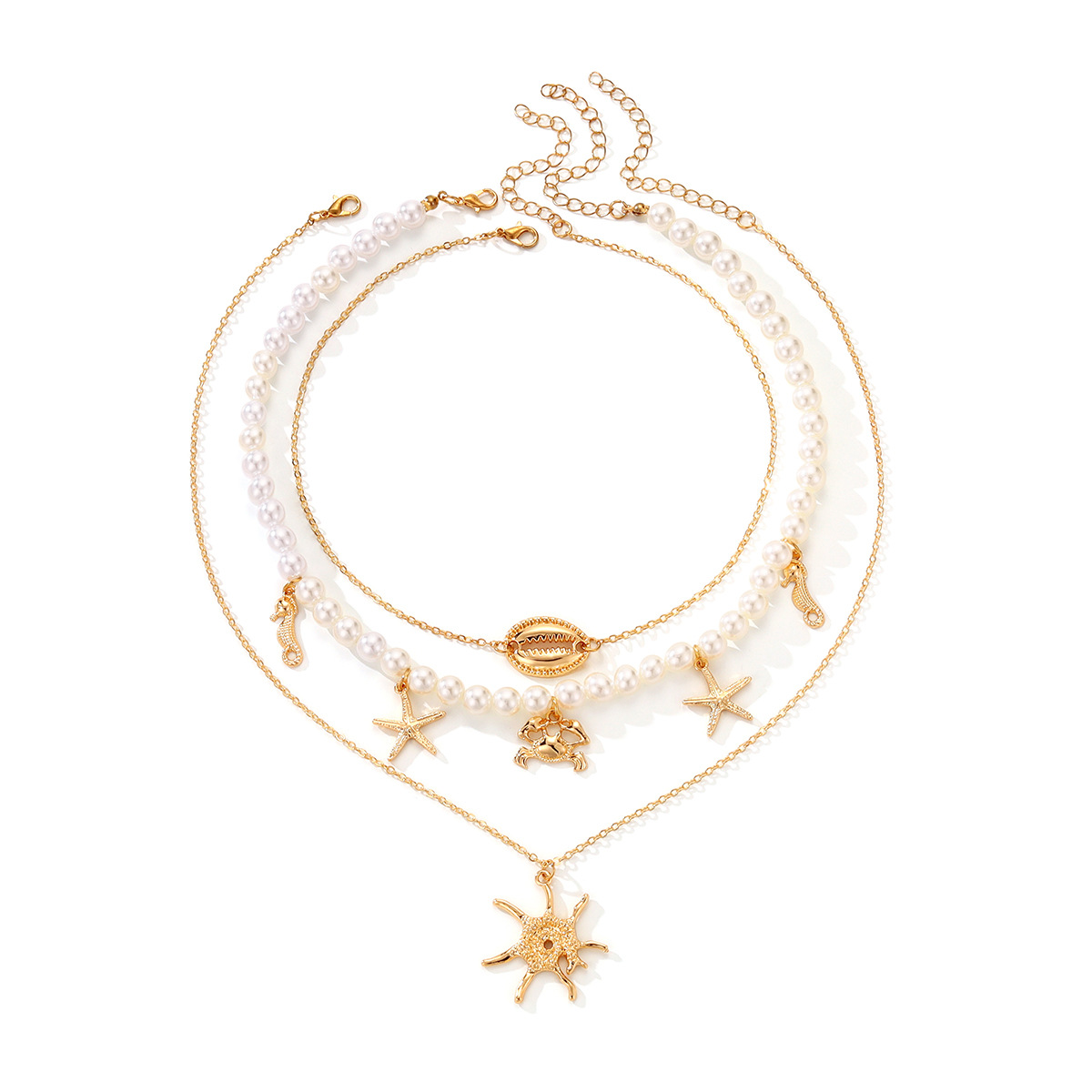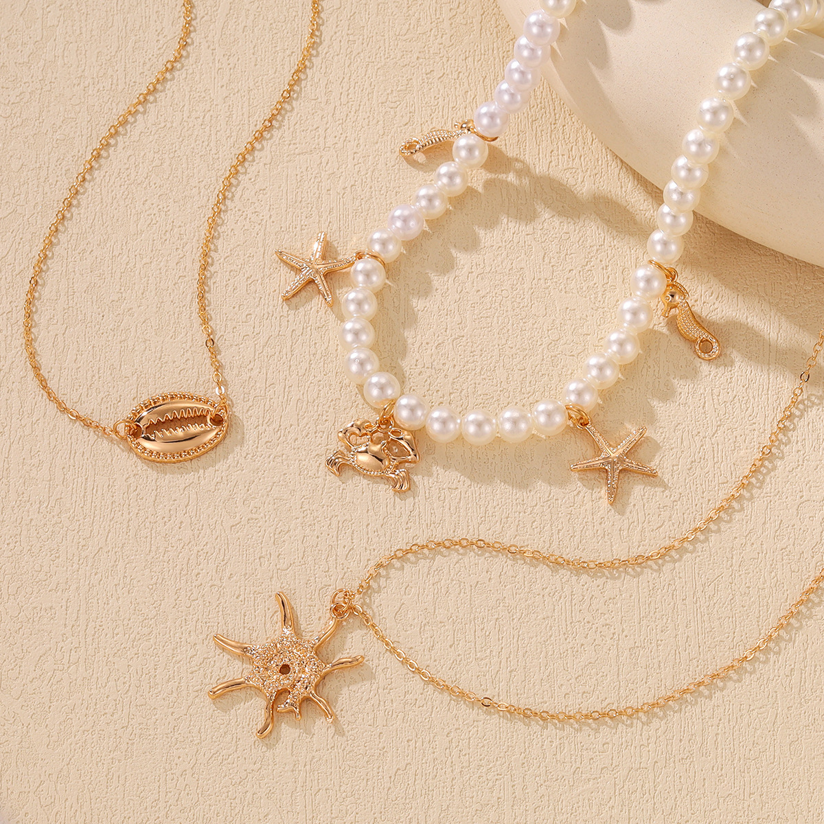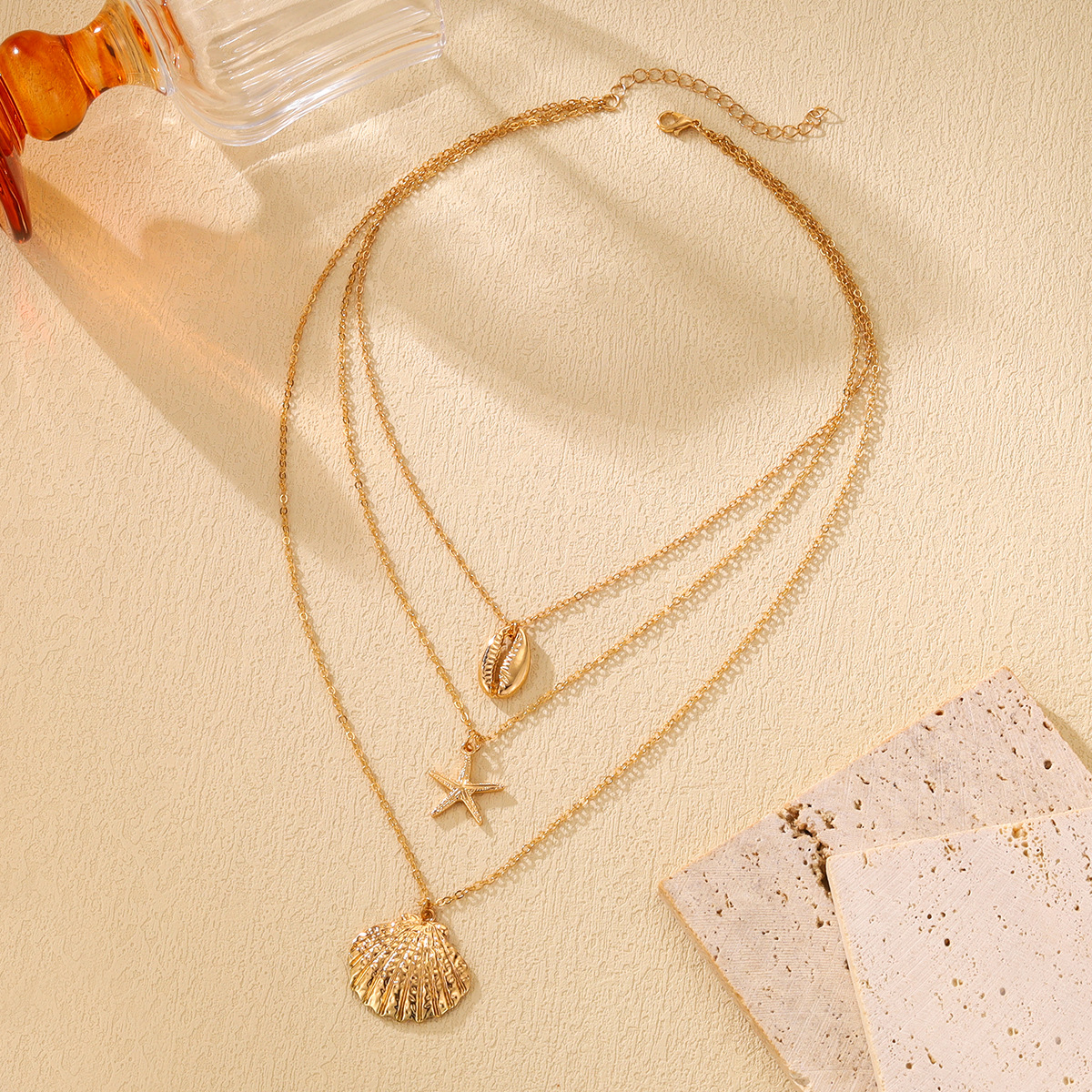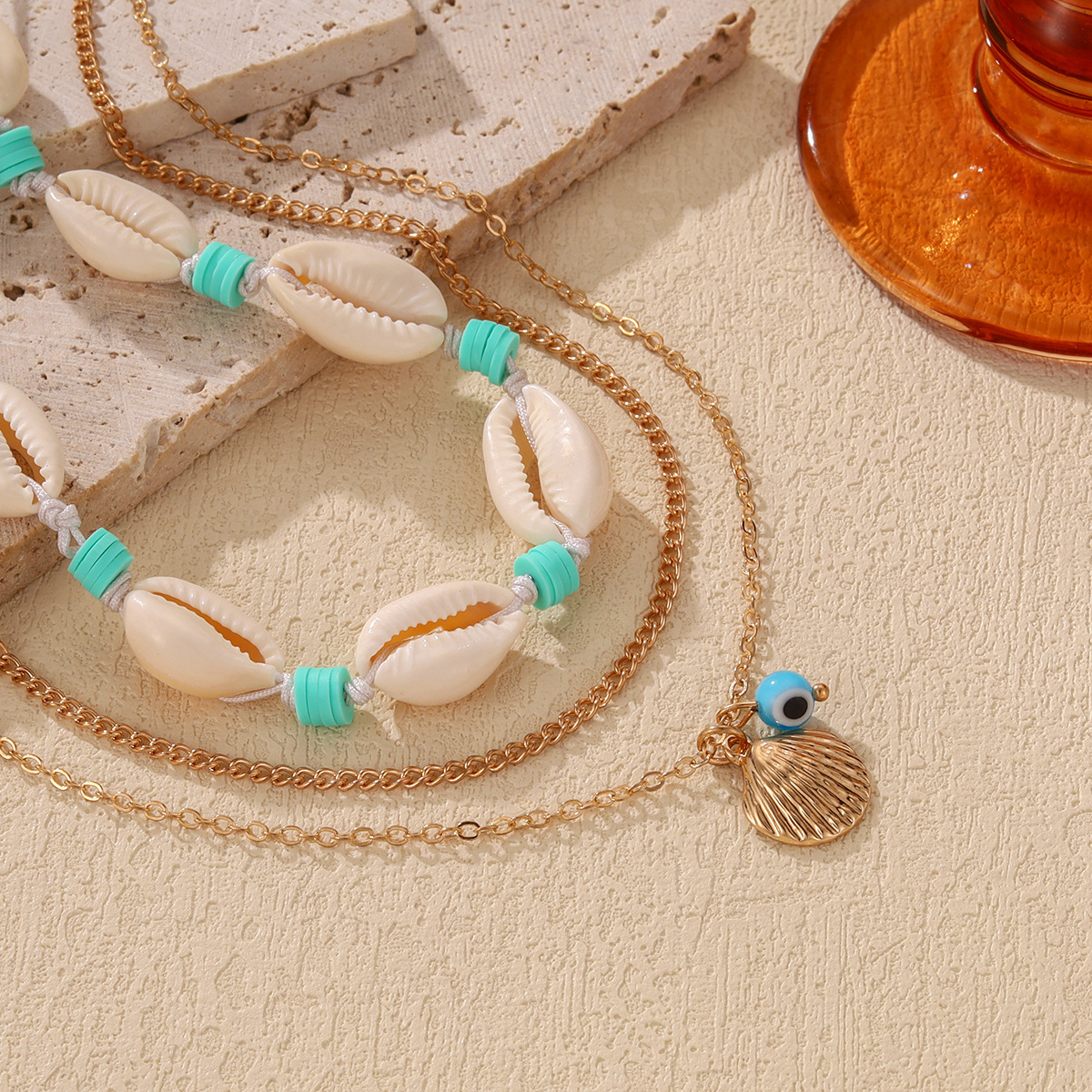 European and American Cross-border Marine Element Alloy Summer Beach Shell Necklace Personalized High-grade Starfish Multi-layer Clavicle Chain