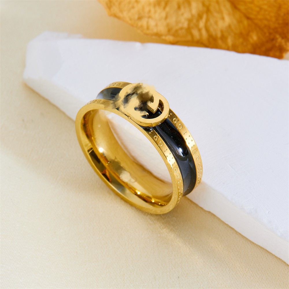 Ancient-Style Ring, Stainless Steel Jewelry, Plated with 18K, Non-Fading, Fashionable, High-End, Resin Black Diamond, Niche Design