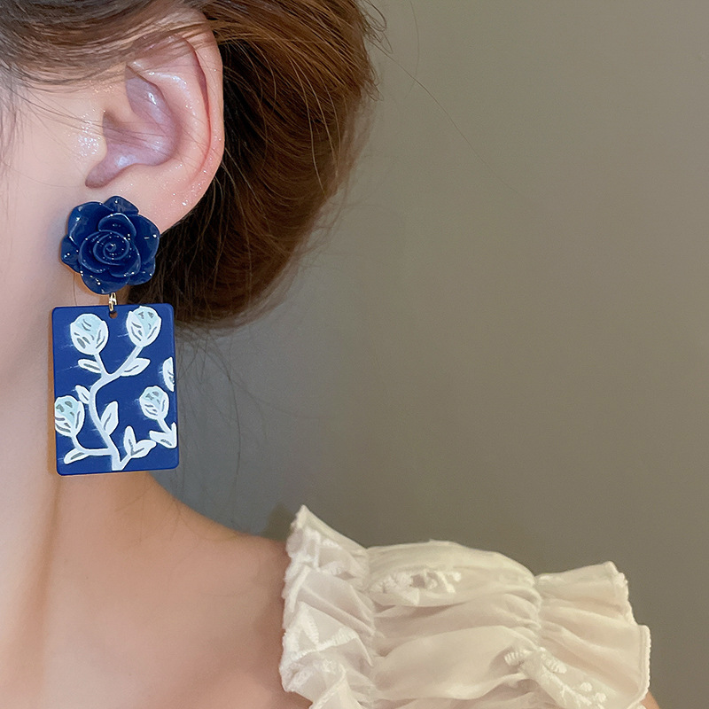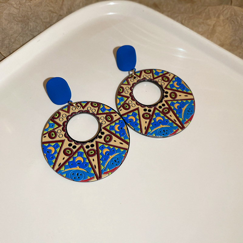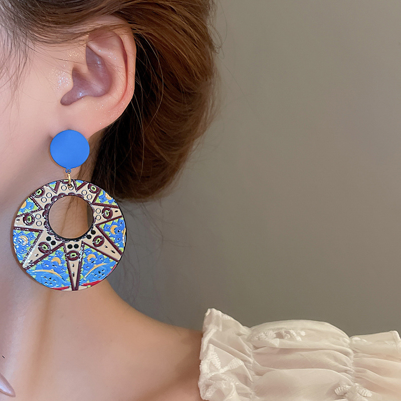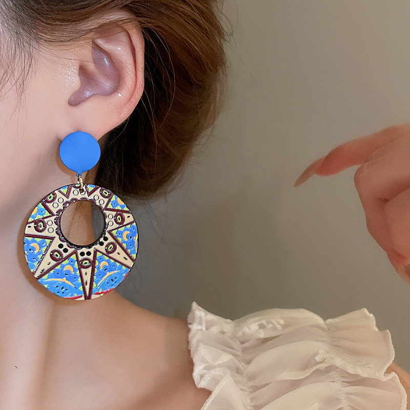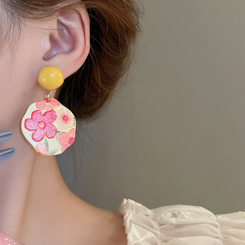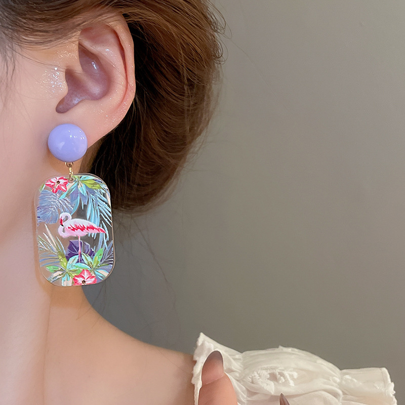Silver Needle French Oil Painting Sunflower Earrings Creative Design Flamingo Earrings Cross-border Aesthetic Artistic Style Earrings