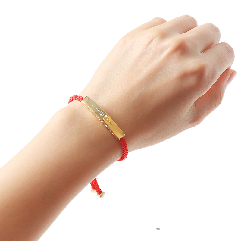Thai Amulet Thai Handicrafts Ajarn Yuwan Small Gold Bar Bracelet Red String Black String Bracelet for Women