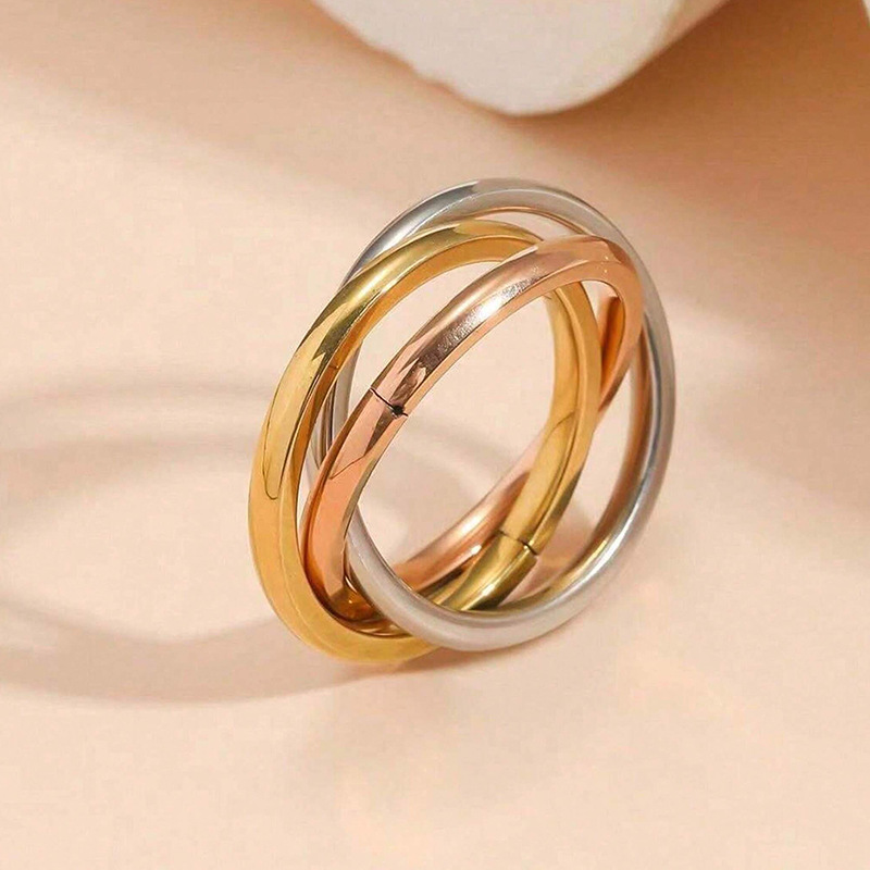 European and American Cross-border Personalized Stainless Steel Three-color Three-ring Ring for Men and Women High-end Fashion Simple Niche Titanium Steel Ring