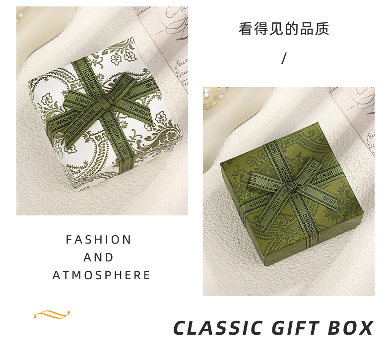 Specification model: White green; 7.5×7.5×4.5 necklace earring box with sponge