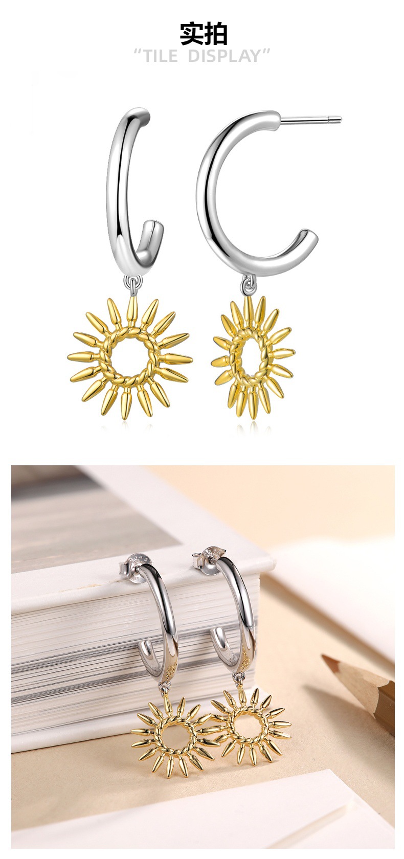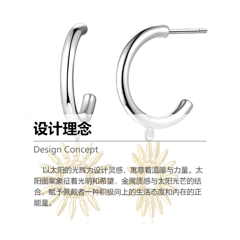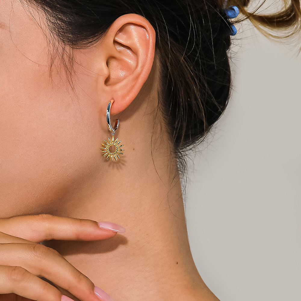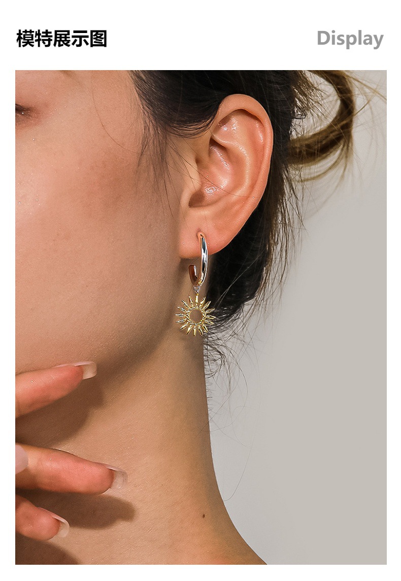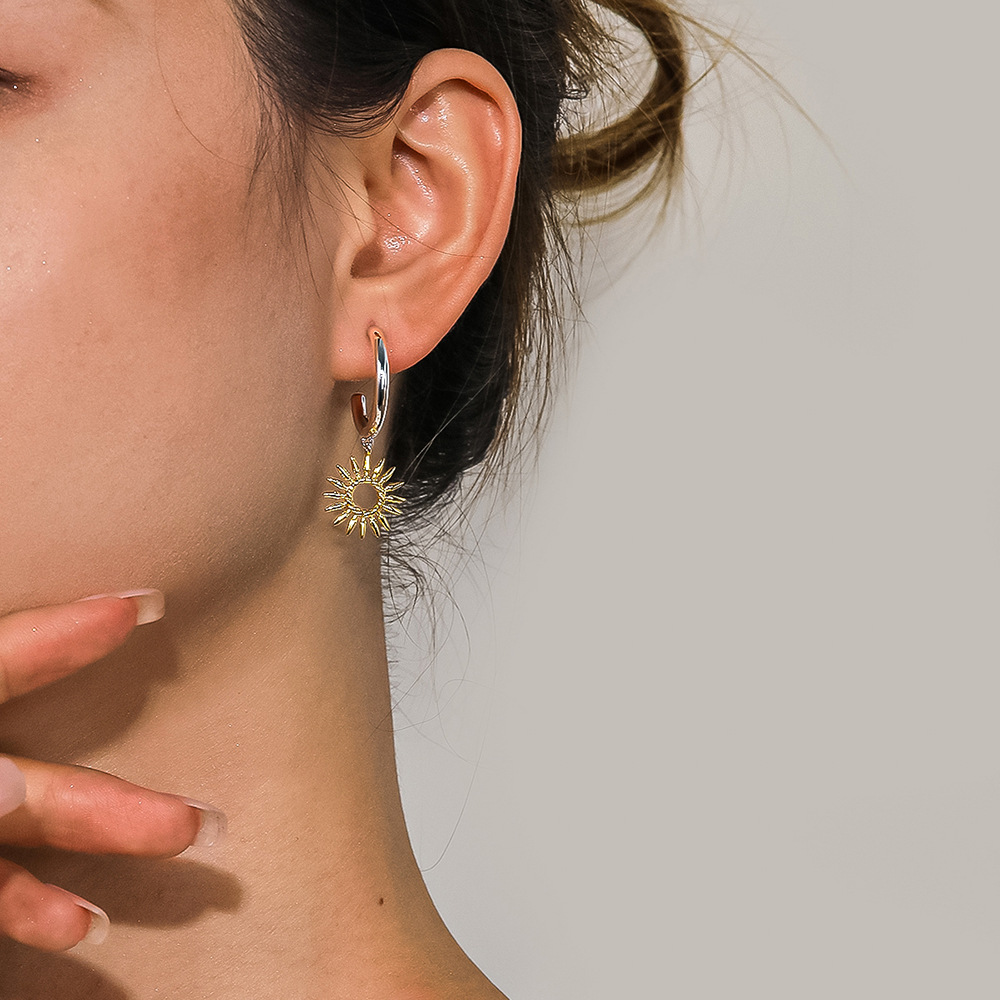 Cross-border European and American Hot Selling Sunflower Earrings Simple Hollow Design Sense Plating 18K Gold Flower Earrings