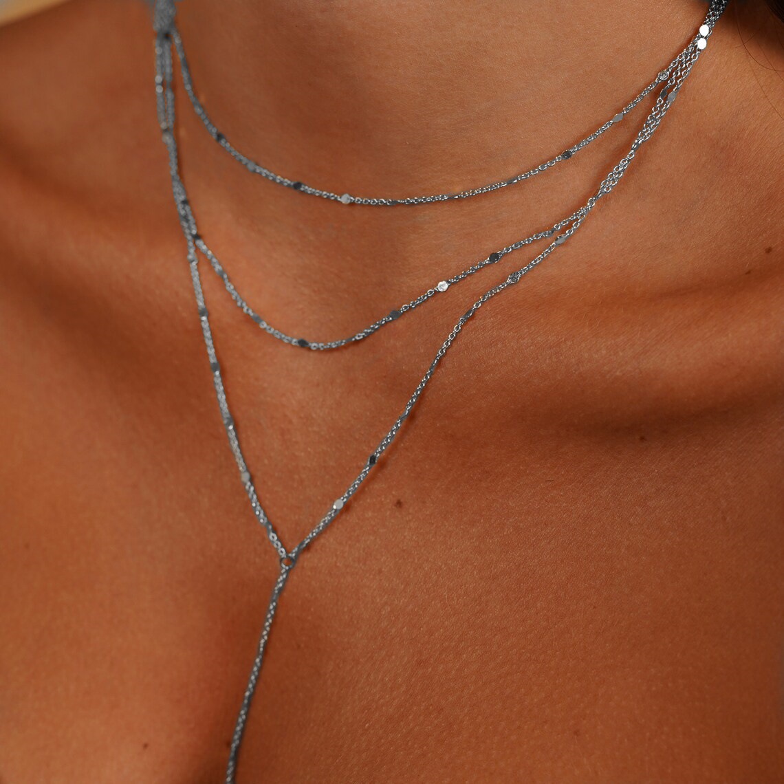 European and American Cross-border Jewelry Fashion Personalized Y-shaped Clavicle Chain Women's Simple All-match Metal Flat Chain Bracelet Necklace