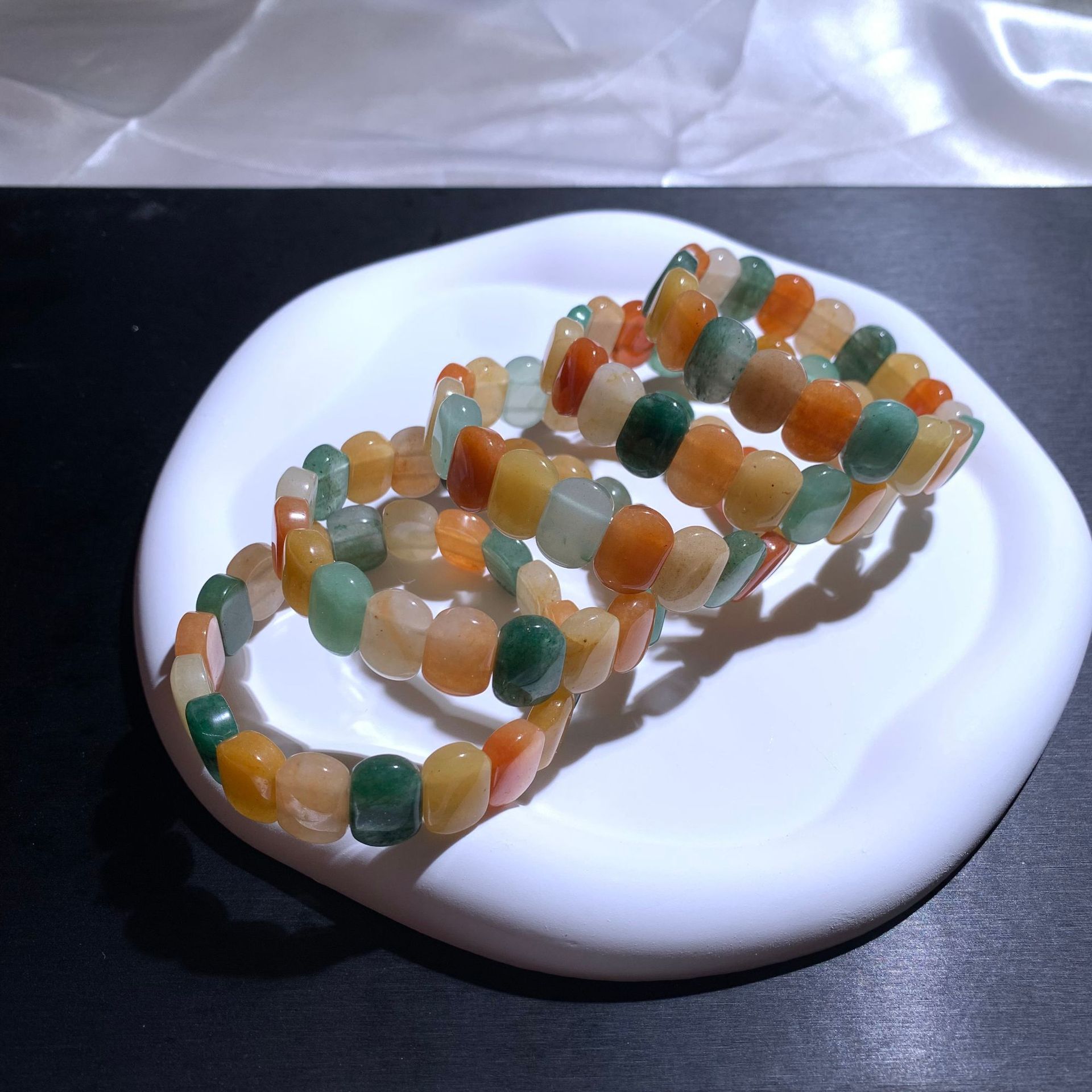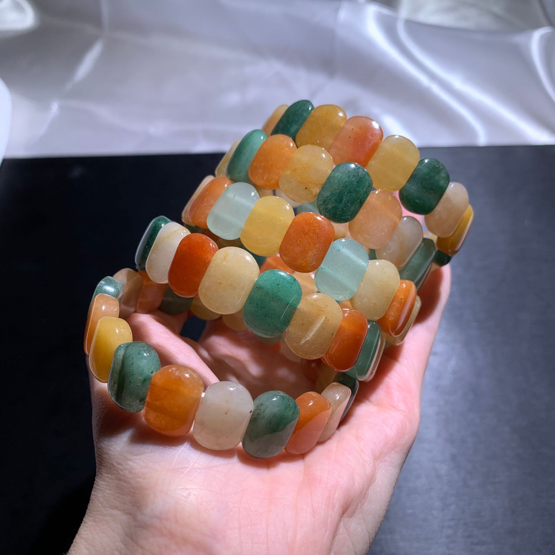 Natural Colorful Jade Handmade Duobao Hand Row Gold Silk Jade Bracelet Jianghu Stall Selling Jade Articles