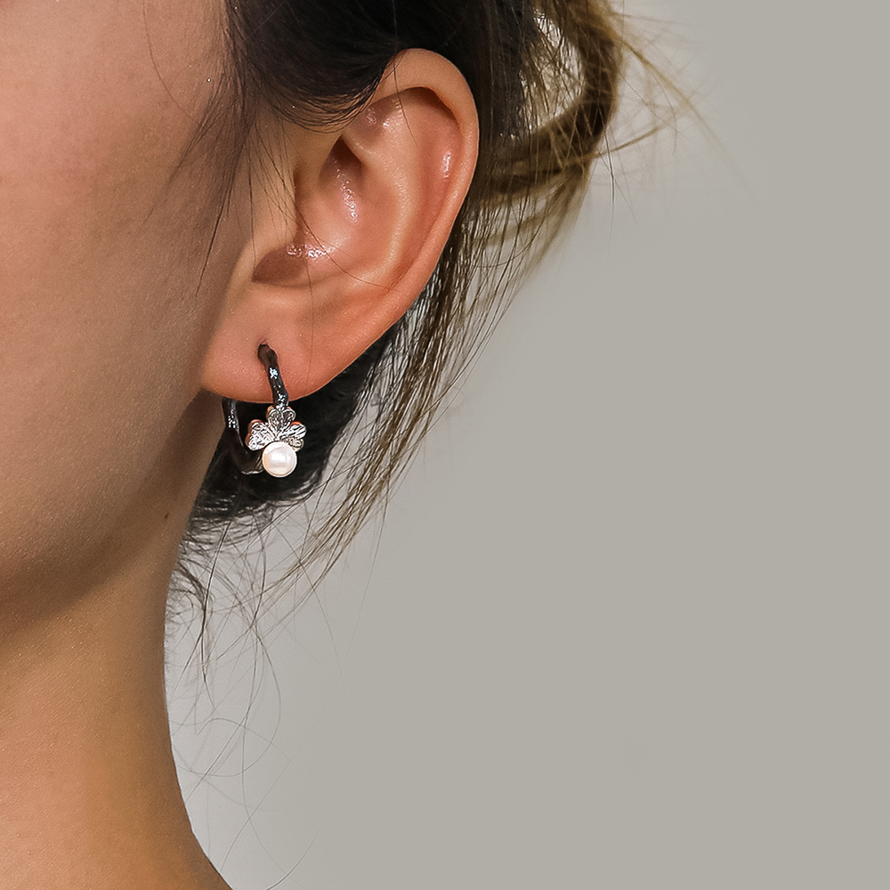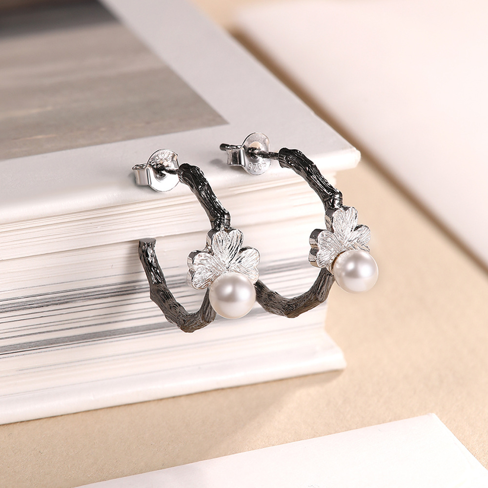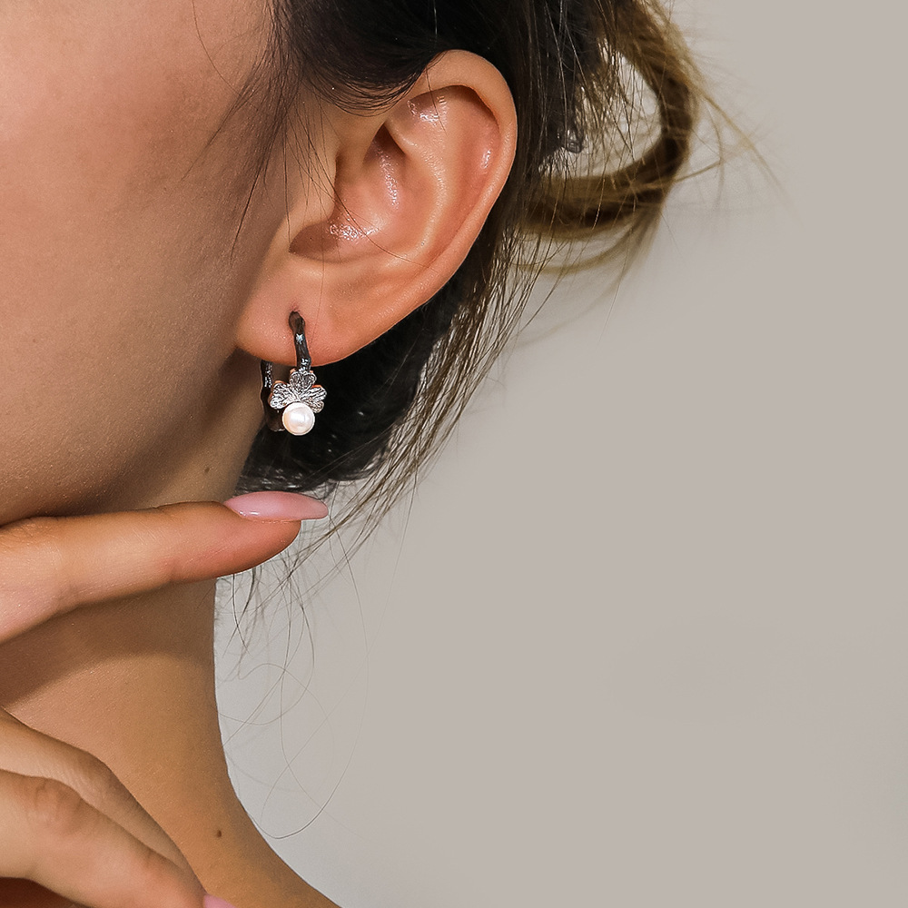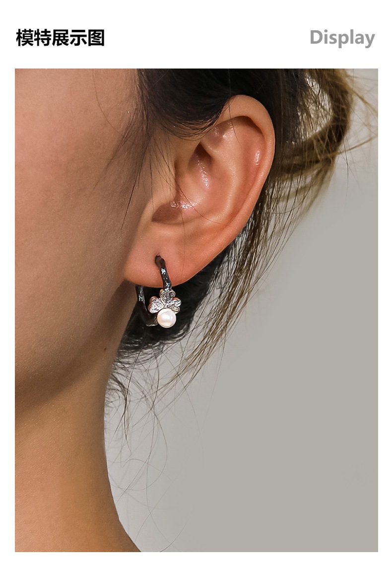 Cross-border Live S925 Sterling Silver Petal Pearl Earrings Sweet and Elegant Flower Half-open C- shaped Earrings