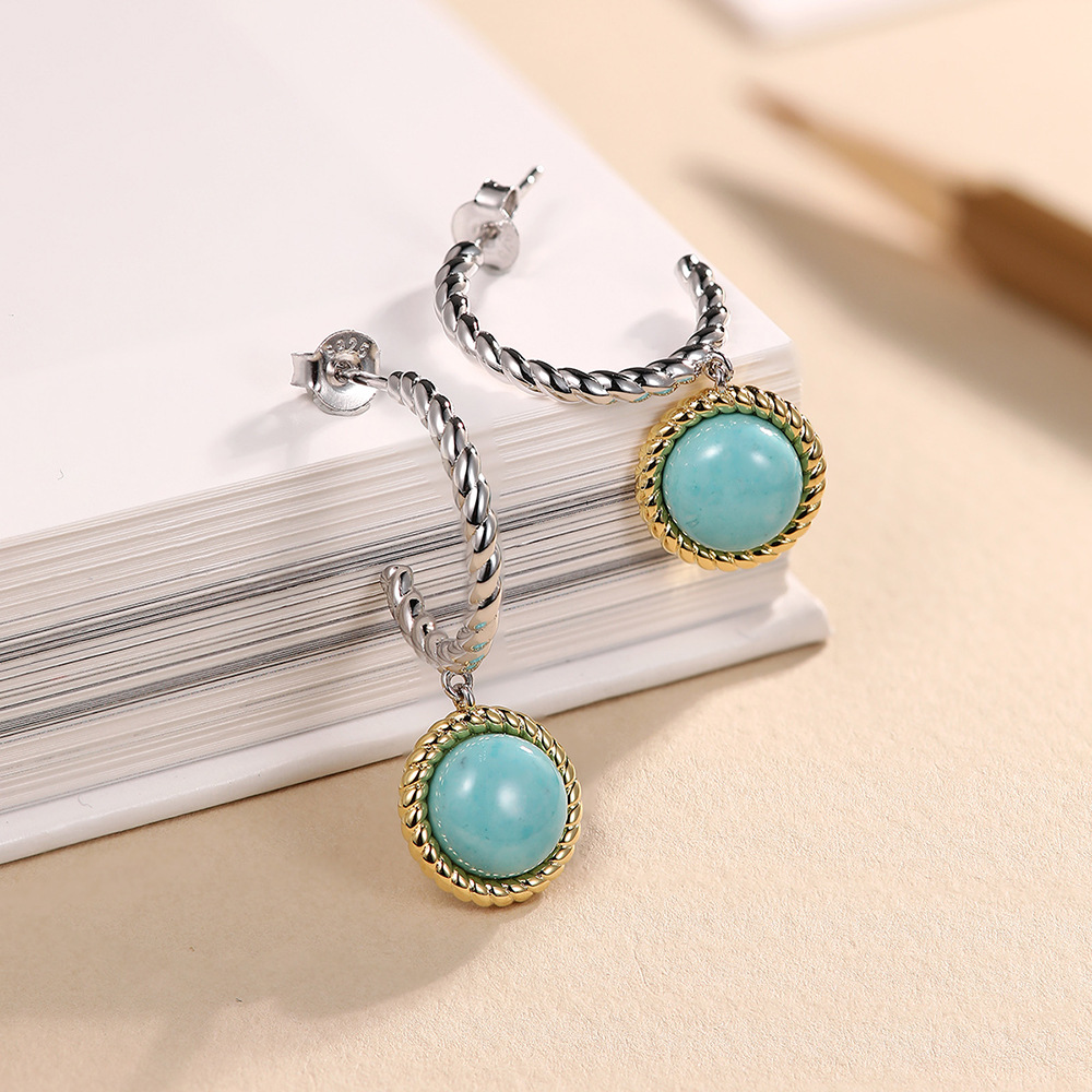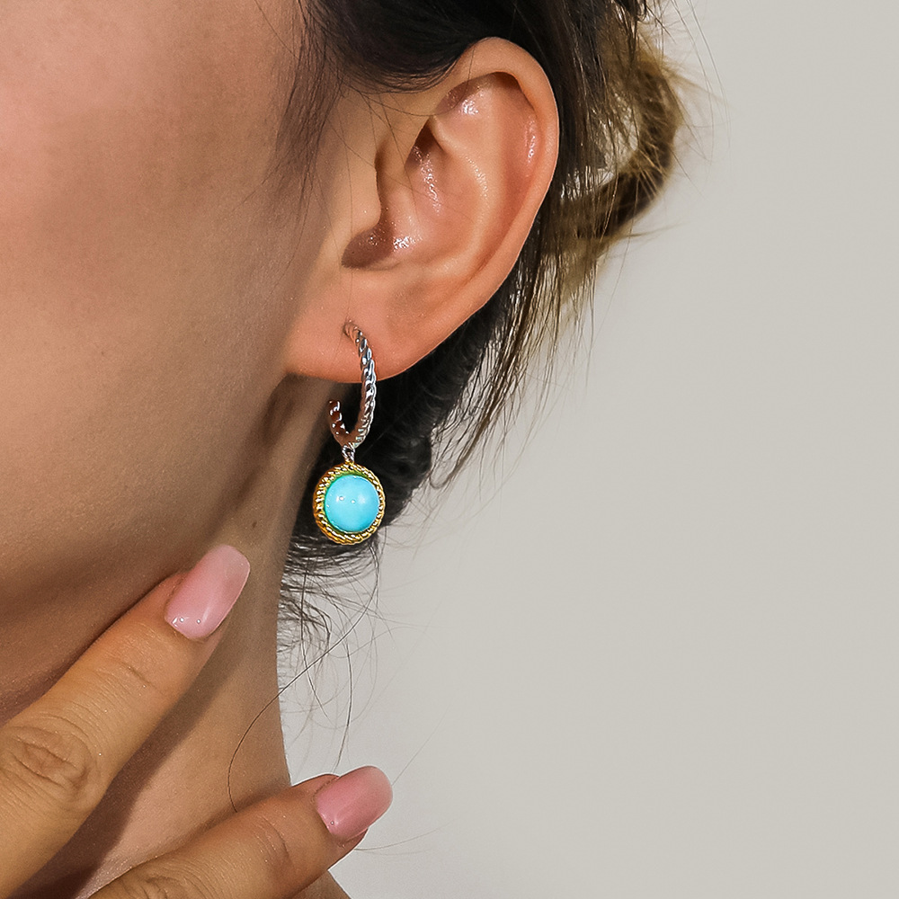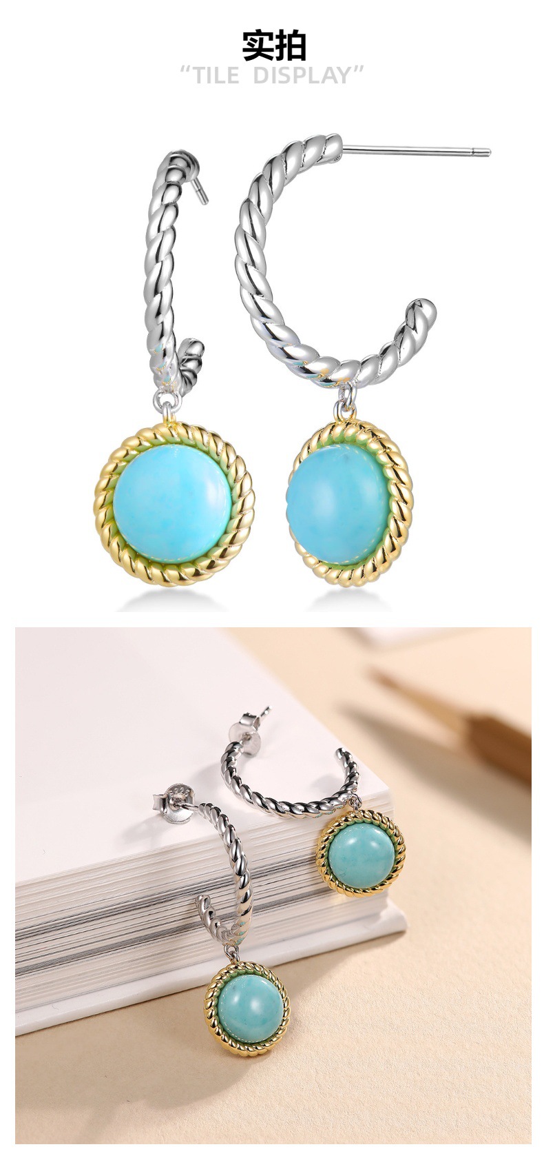 Cross-Border Retro Round Earrings, High-End Temperament Earrings, Anti-Blue Turquoise Earrings, European and American Earrings Wholesale