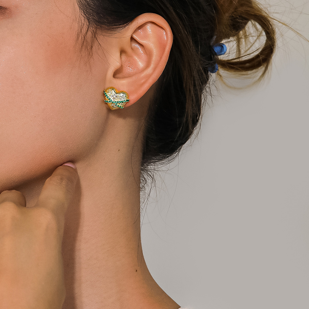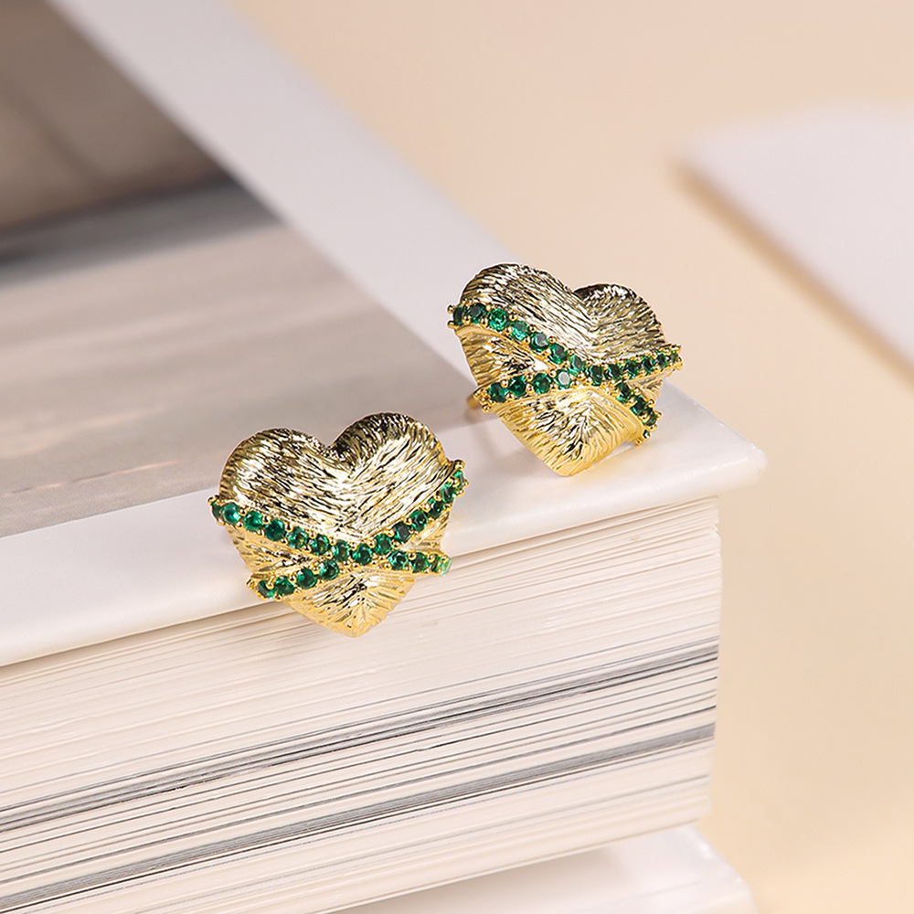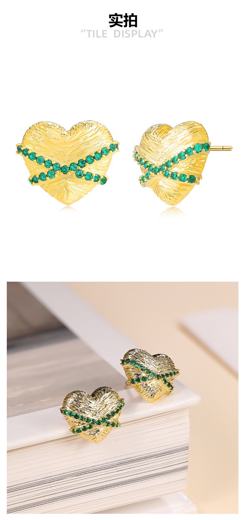 Cross-border new S925 silver texture love earrings plated 18k gold temperament diamond green chain 5A zircon earrings