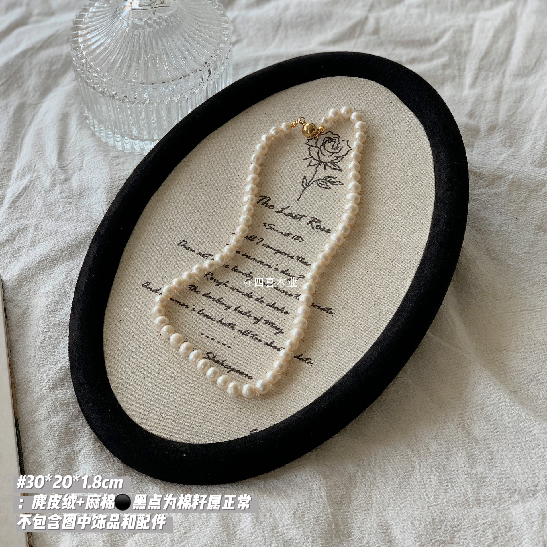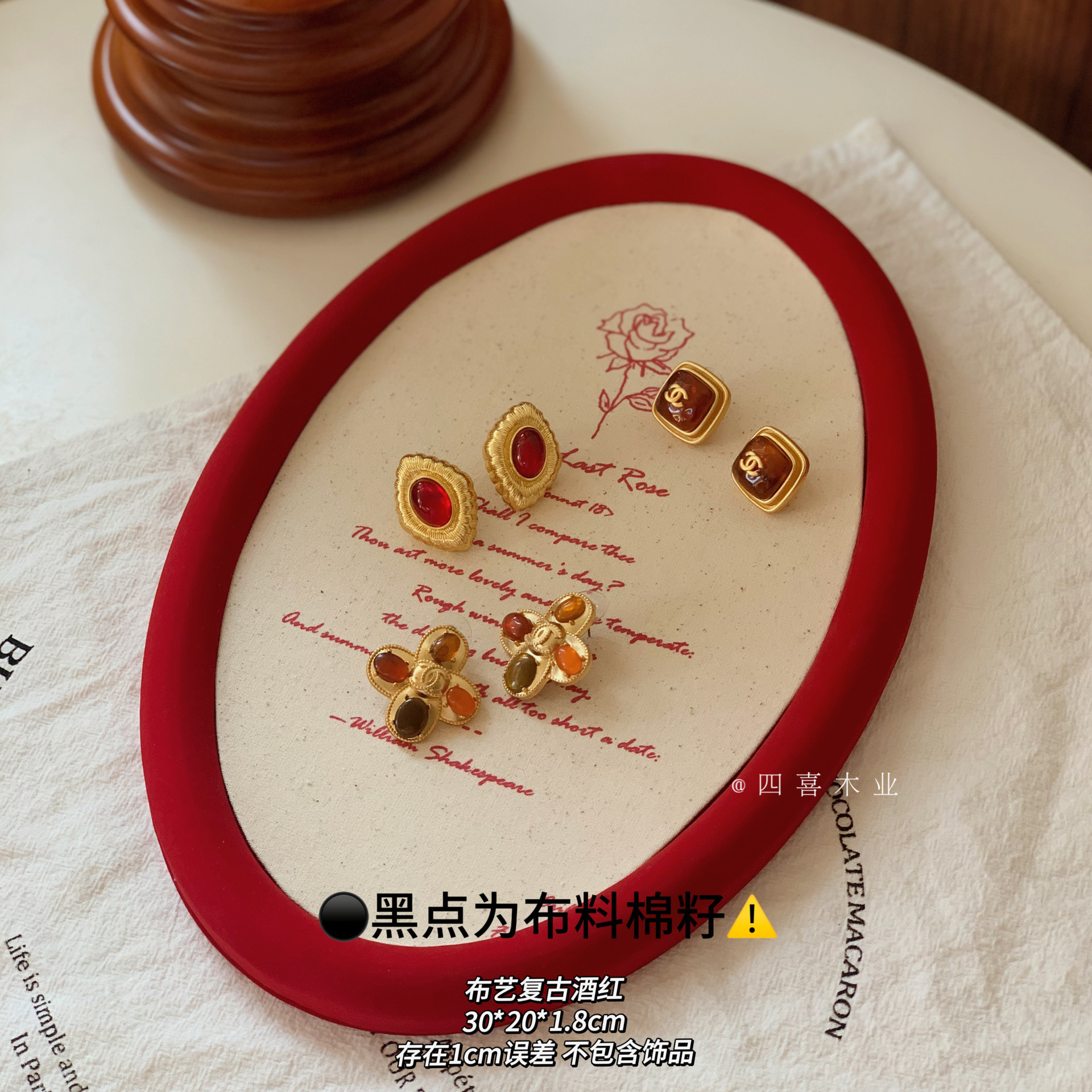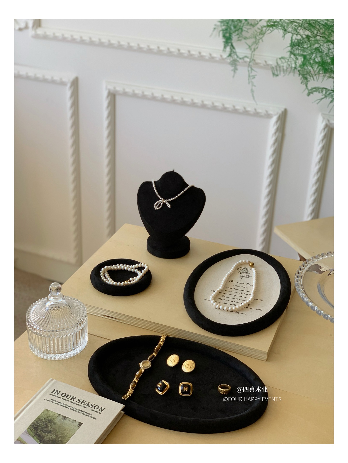 Ins Style Fabric Wooden Jewelry Plate Tray Vintage Display Shot Props Ring Necklace Earrings Earrings