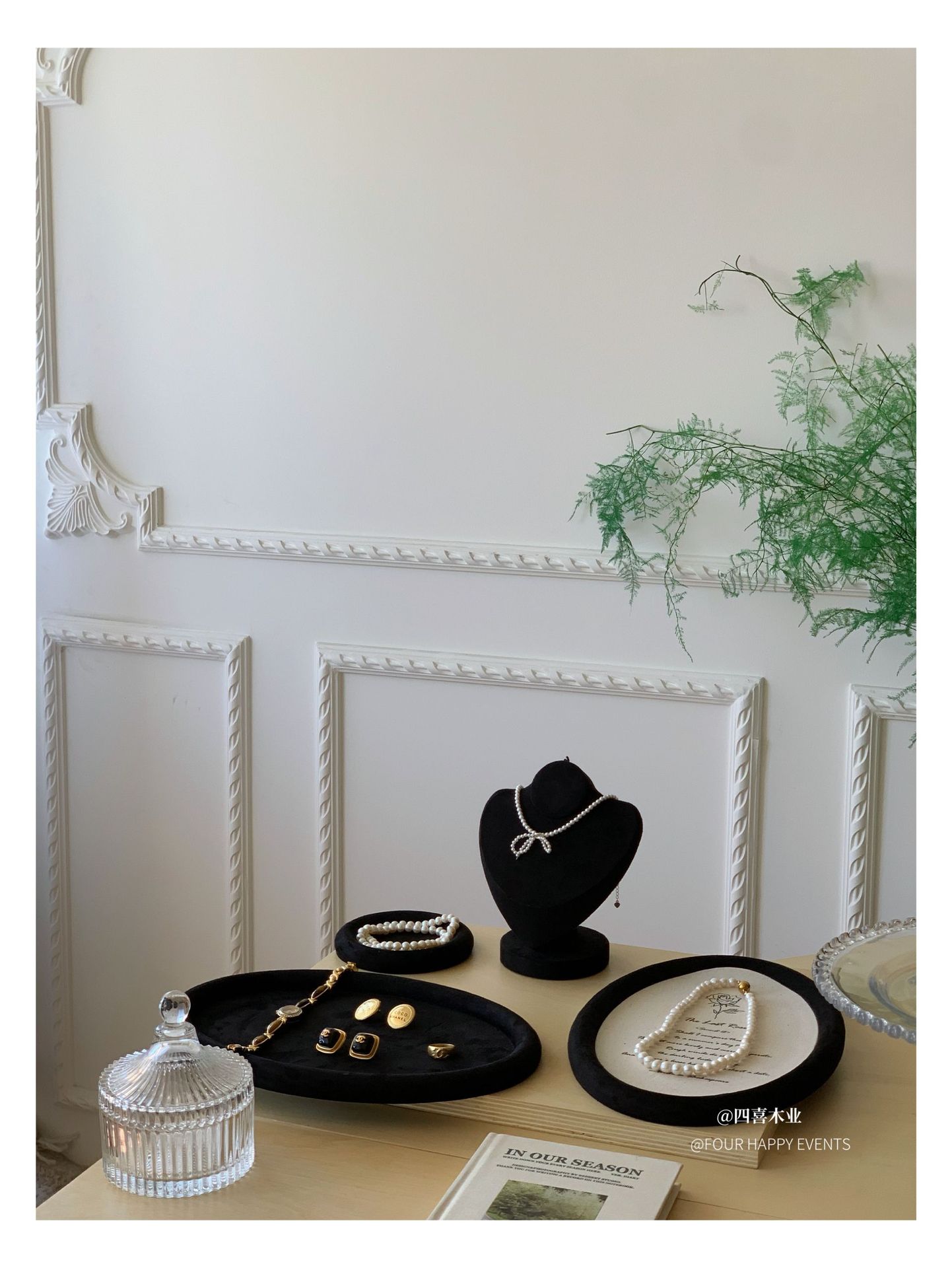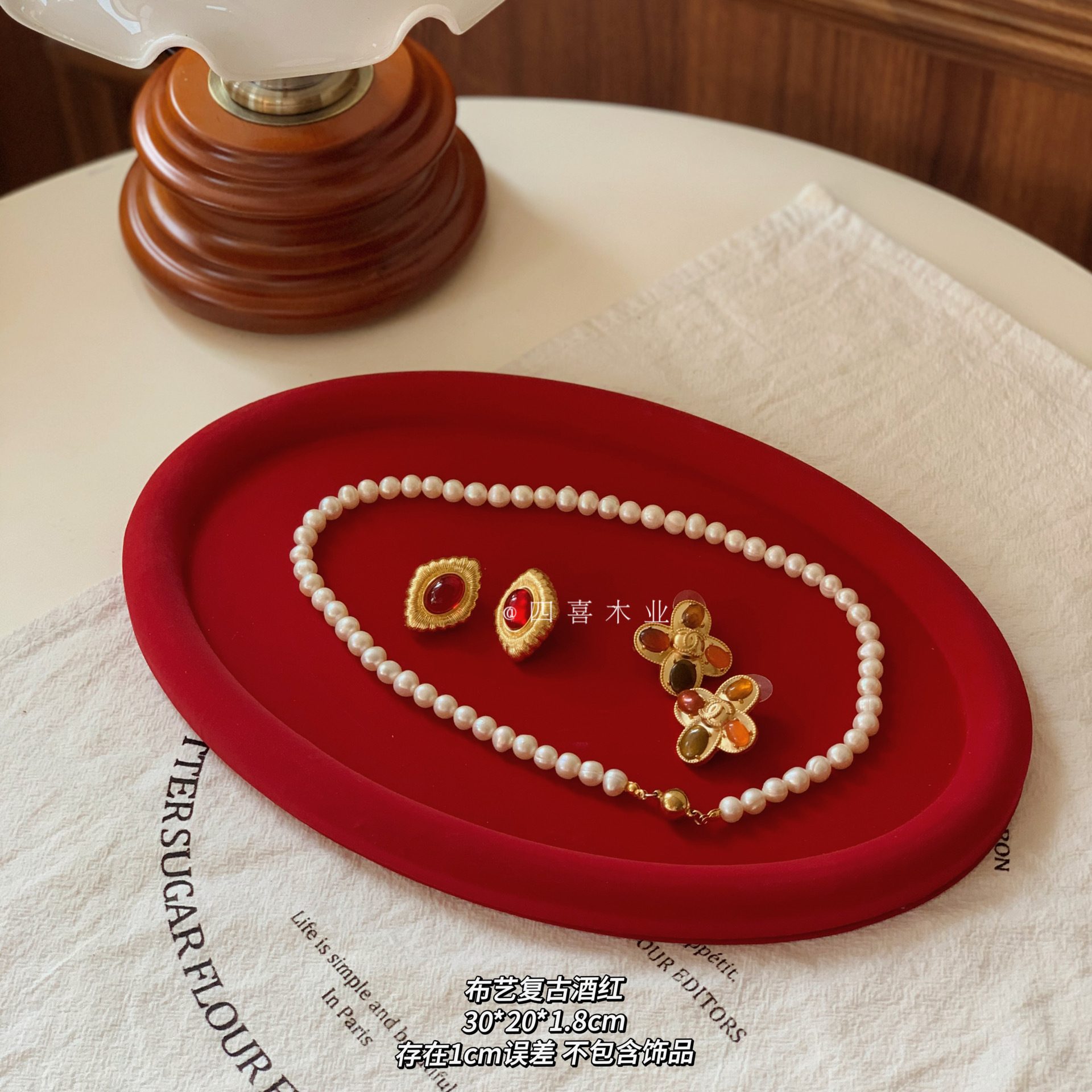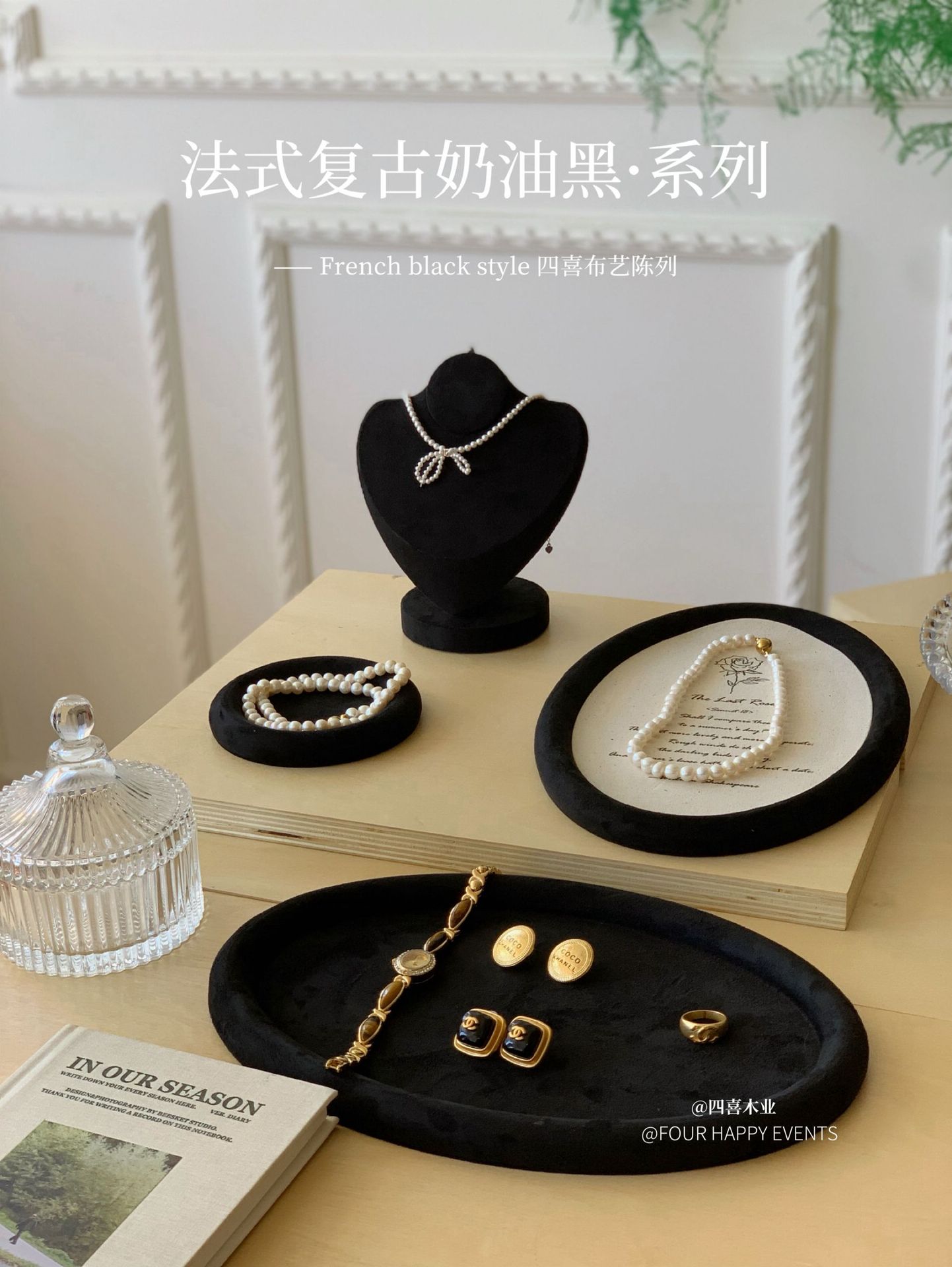 Ins Style Fabric Wooden Jewelry Plate Tray Vintage Display Shot Props Ring Necklace Earrings Earrings