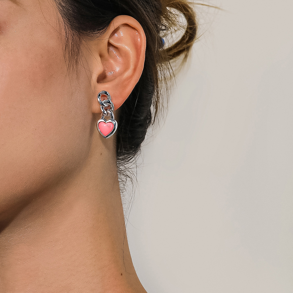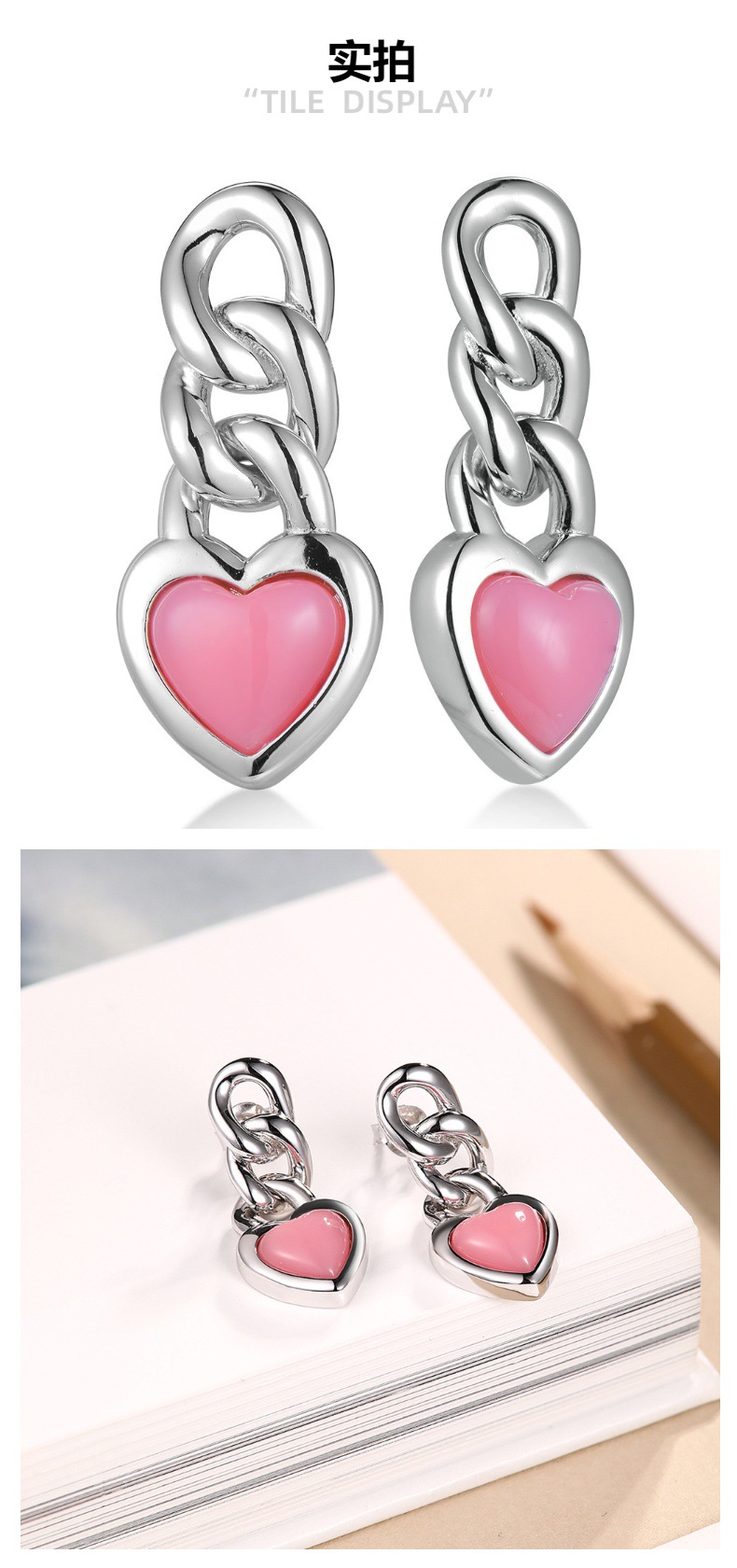 Cross-border hot pink love earrings dopamine sweet heart simple chain earrings wholesale