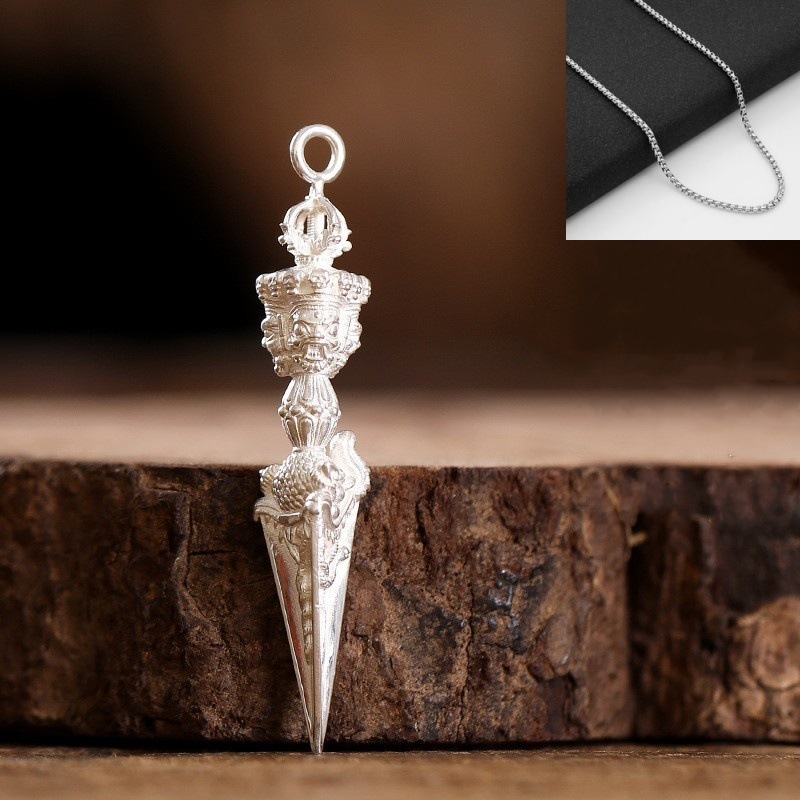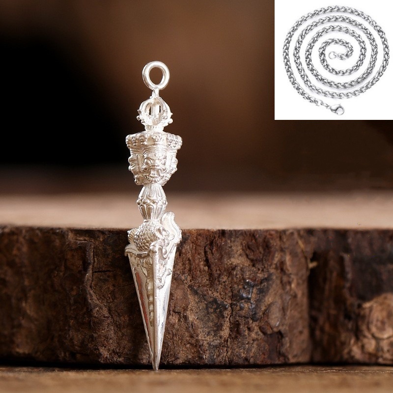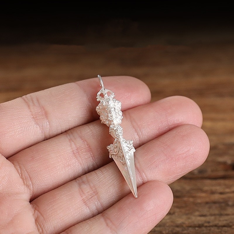 S999 Pure Silver Trimmed Three-sided Puba King Kong Demon-lowering Pestle Features Men's and Women's Carry-on Pendant Pendant small size