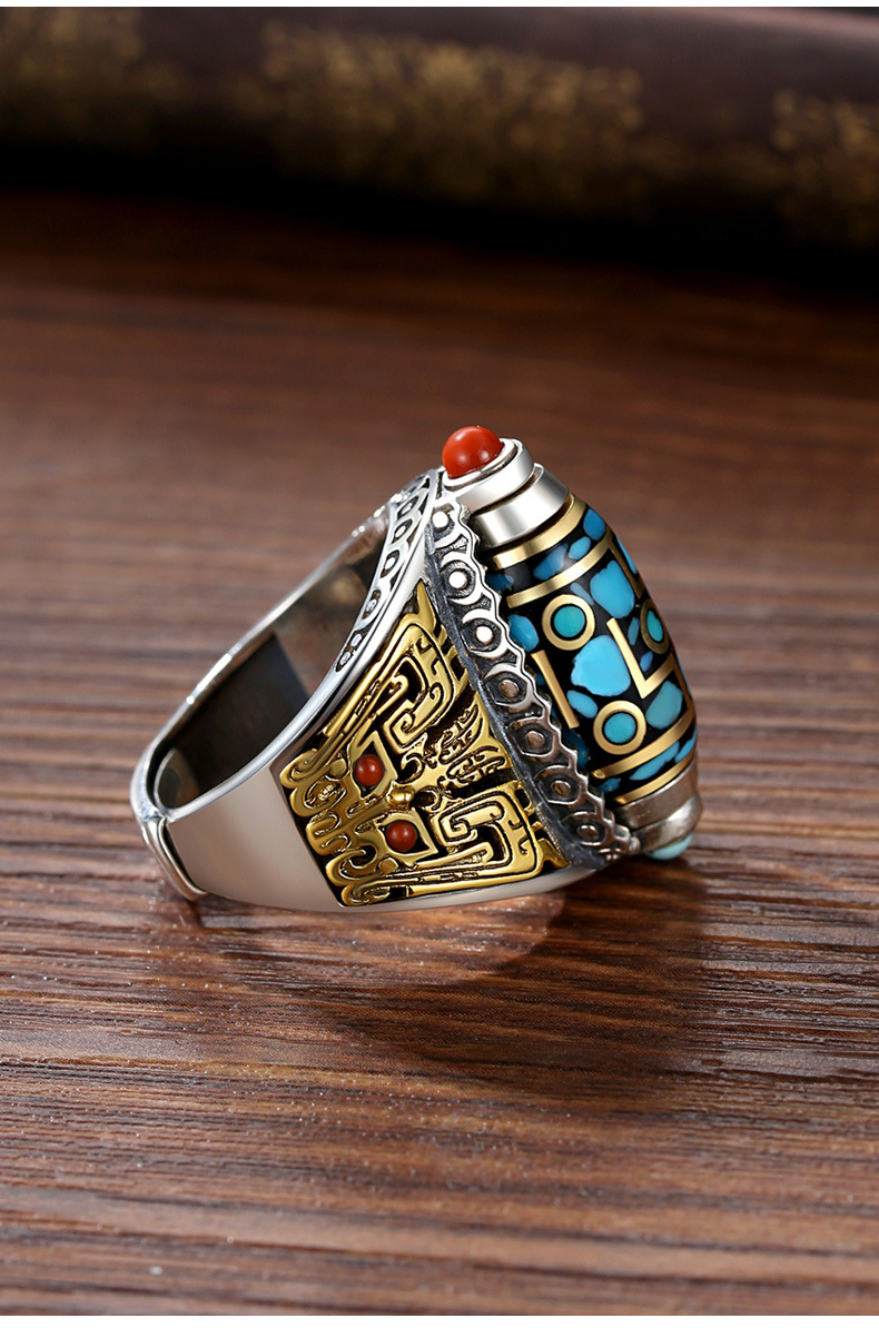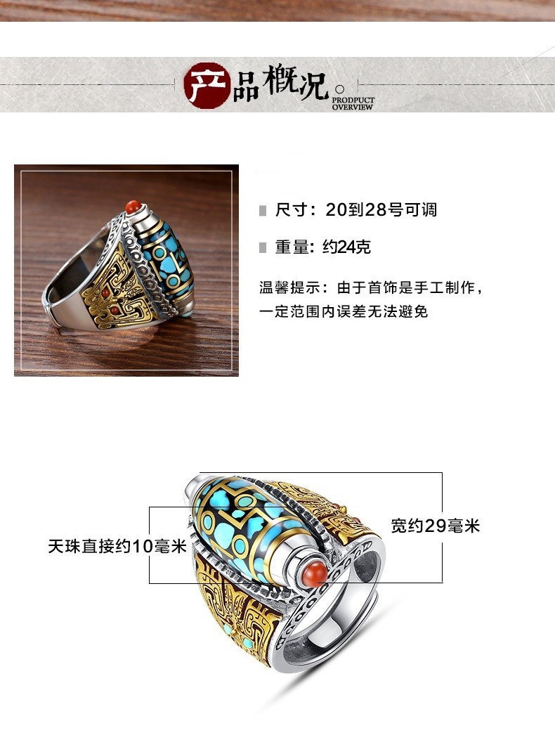 Color: TJ-1591 "nine eyes dzi beads" ring