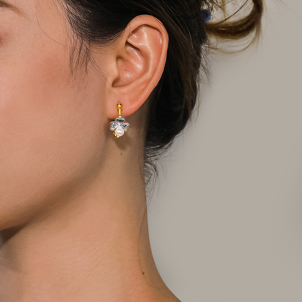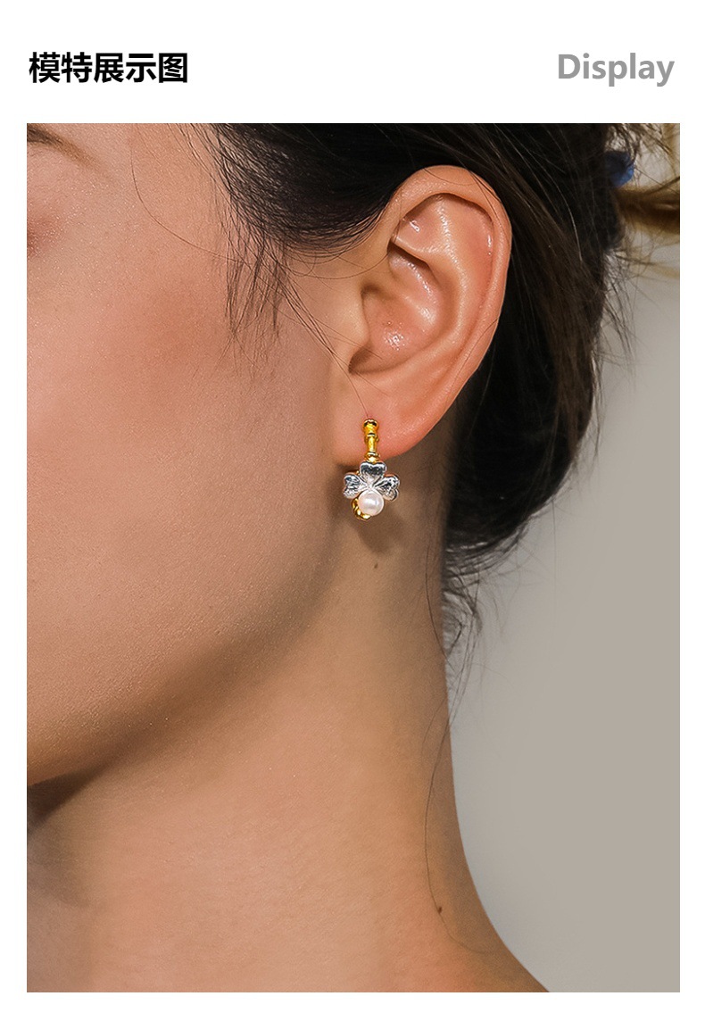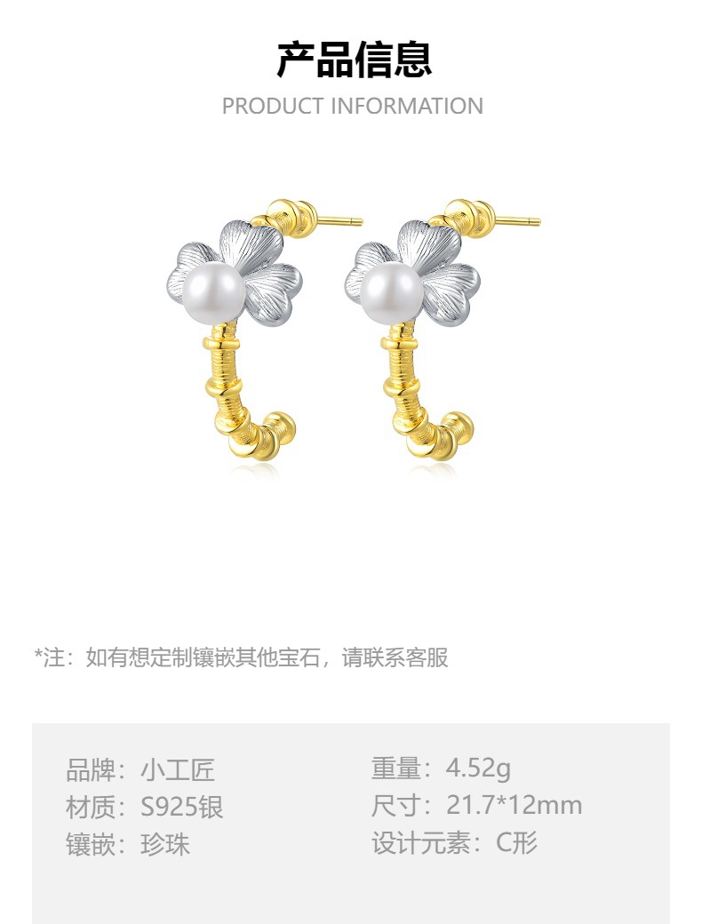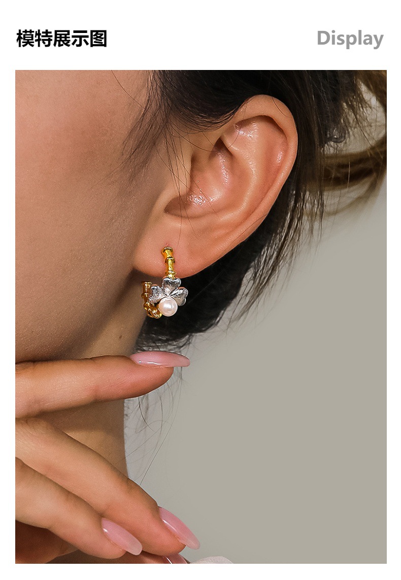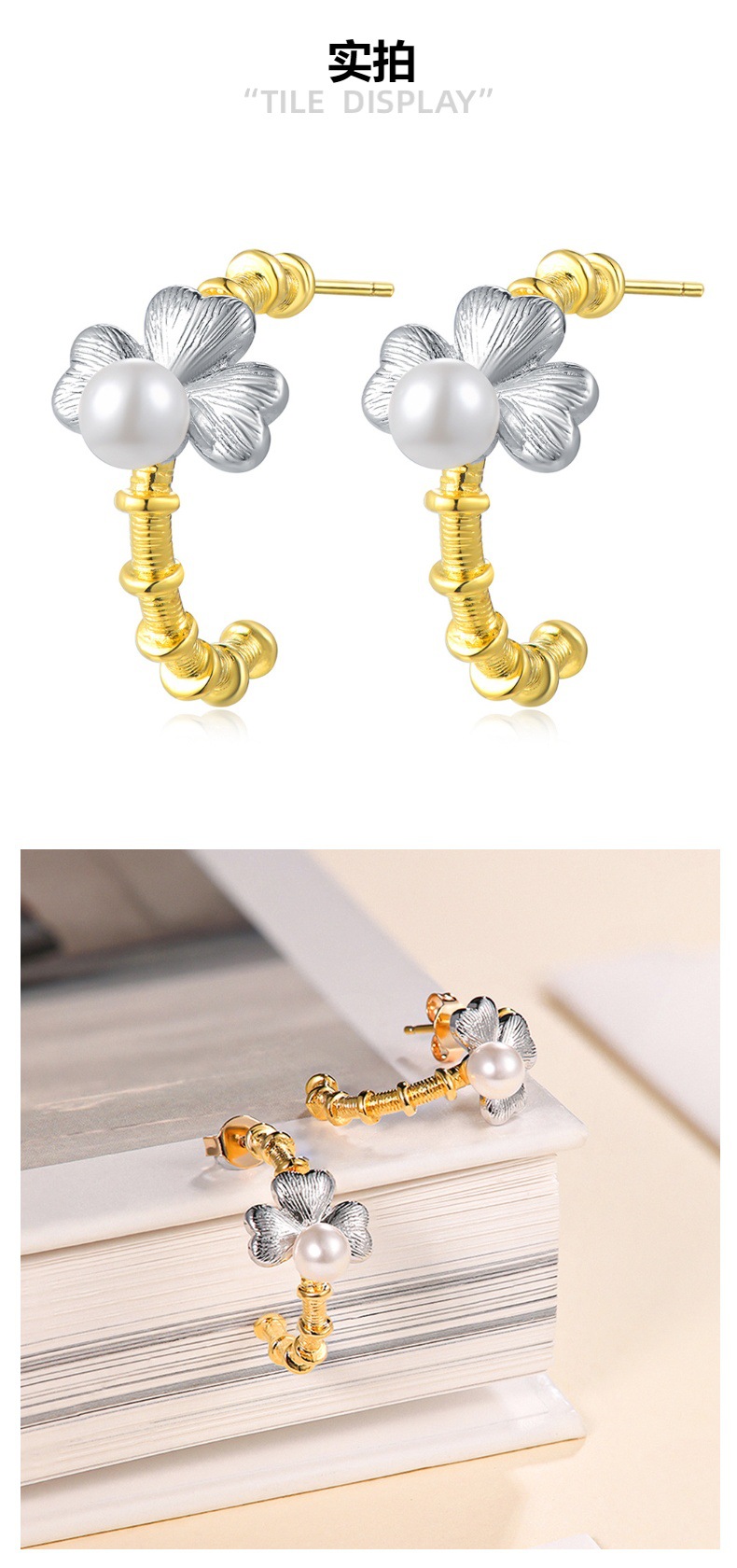 Cross-border Europe and America S925 Sterling Silver C- shaped Flower Pearl Earrings Plated 18k Gold Fashion Design Sense Earrings Earrings Wholesale
