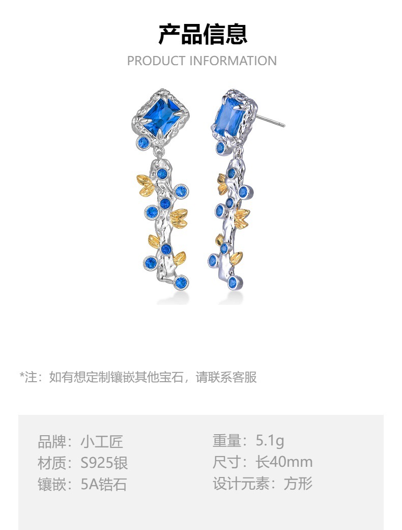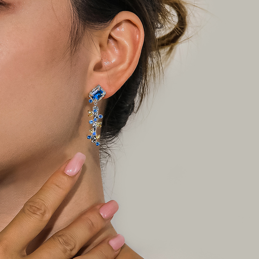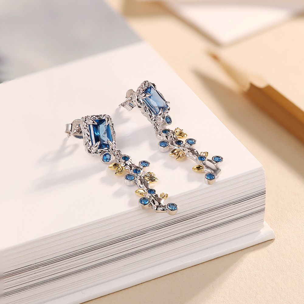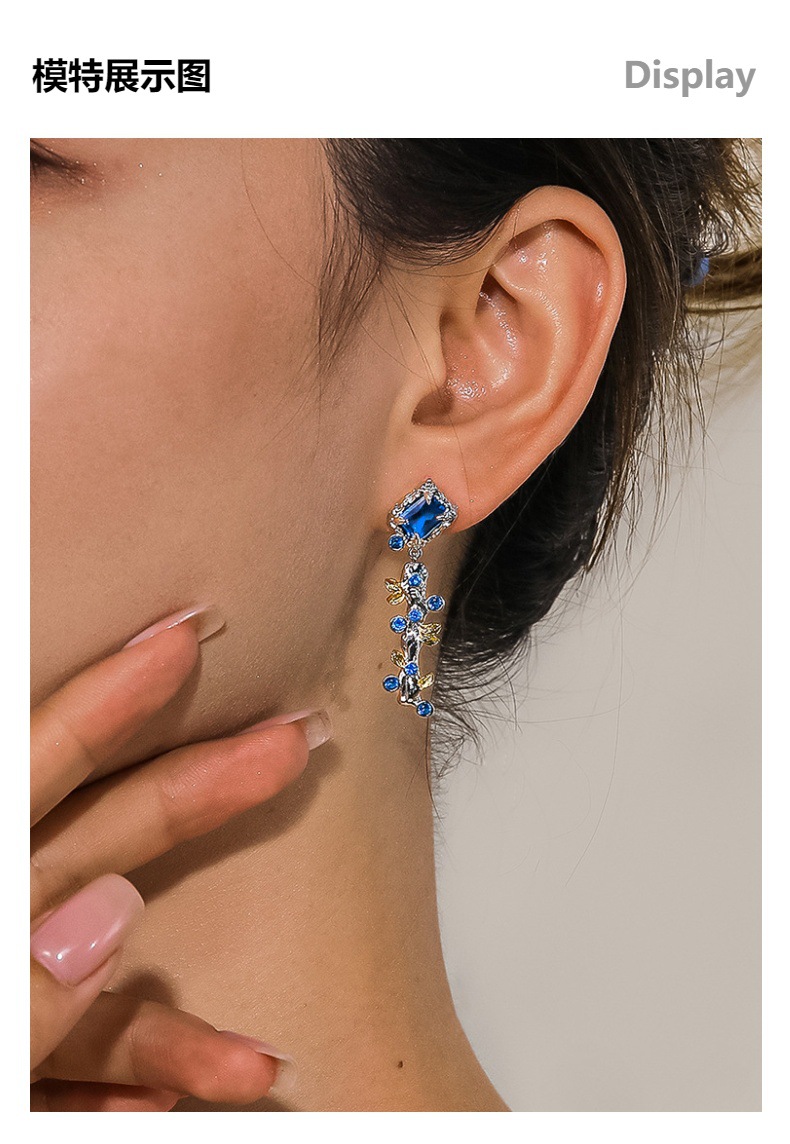 Cross-border European and American S925 Sterling Silver Square Blue Zircon Earrings Luxury High-grade Diamond Color Treasure Vintage Earrings