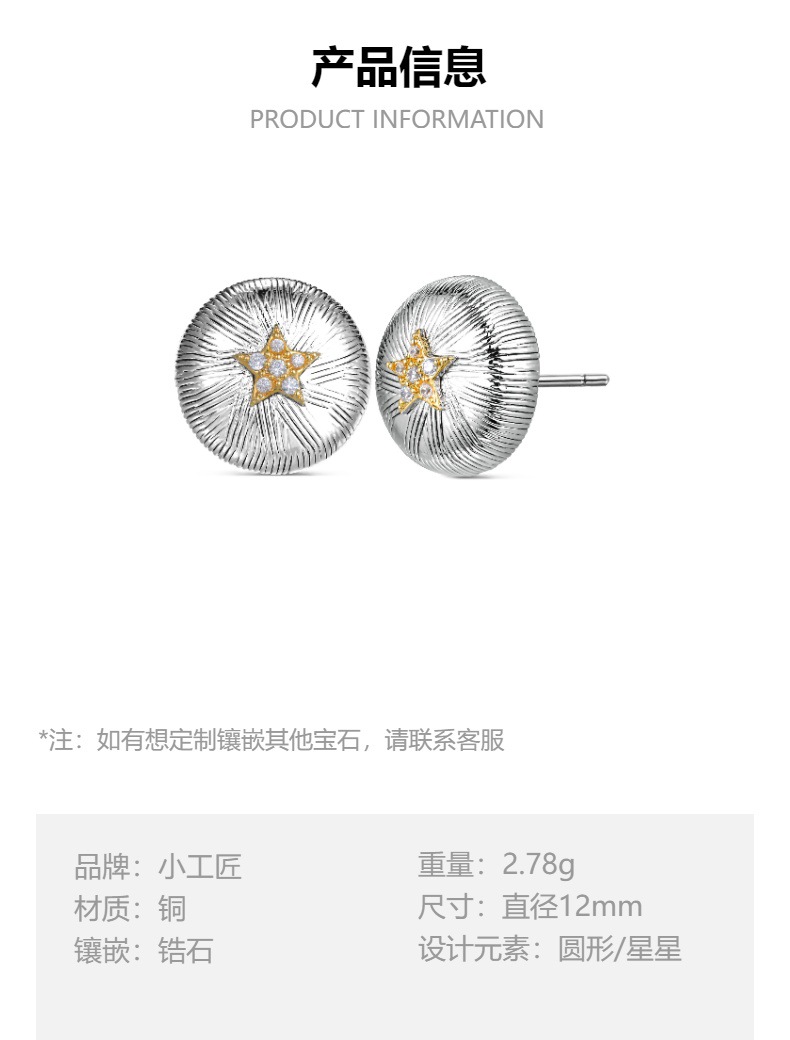 Cross-Border New Retro Palace Brushed Star Earrings with Diamonds 5A Zircon Round Five-Pointed Star Earrings