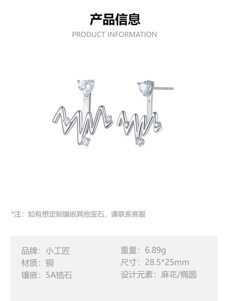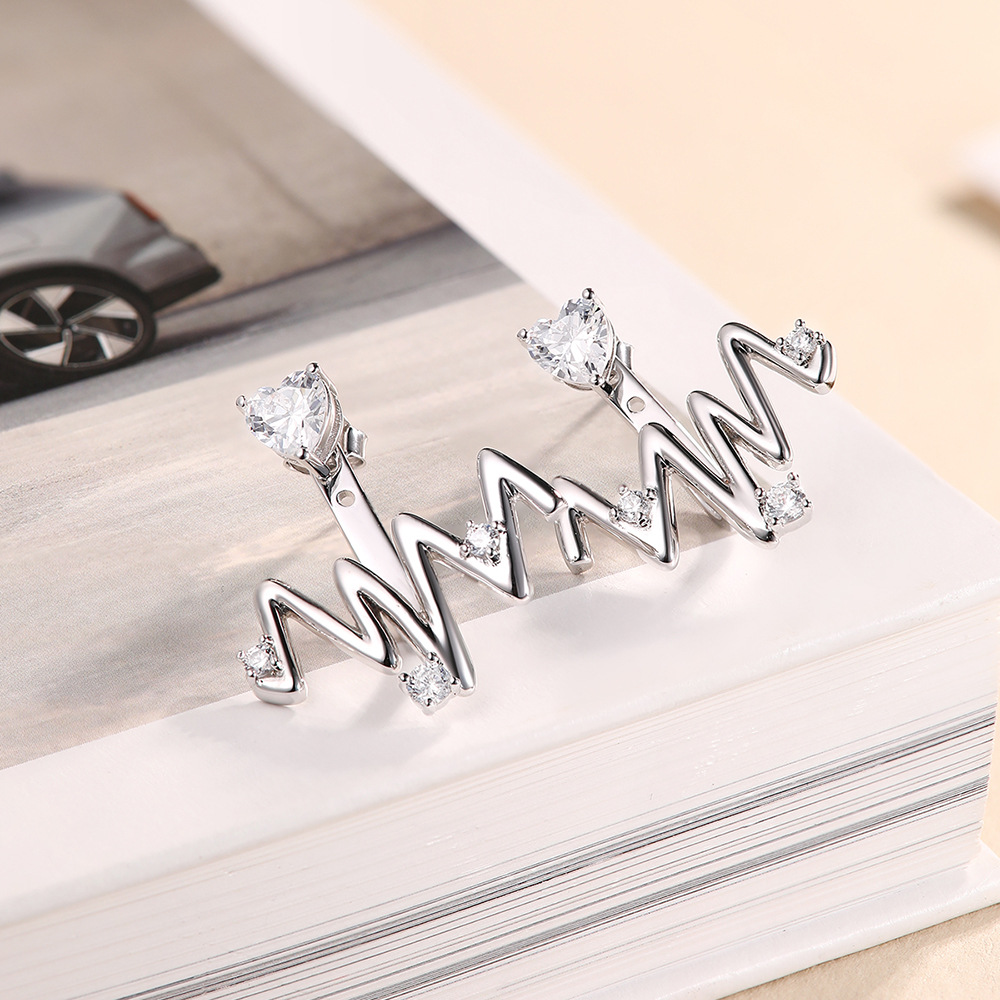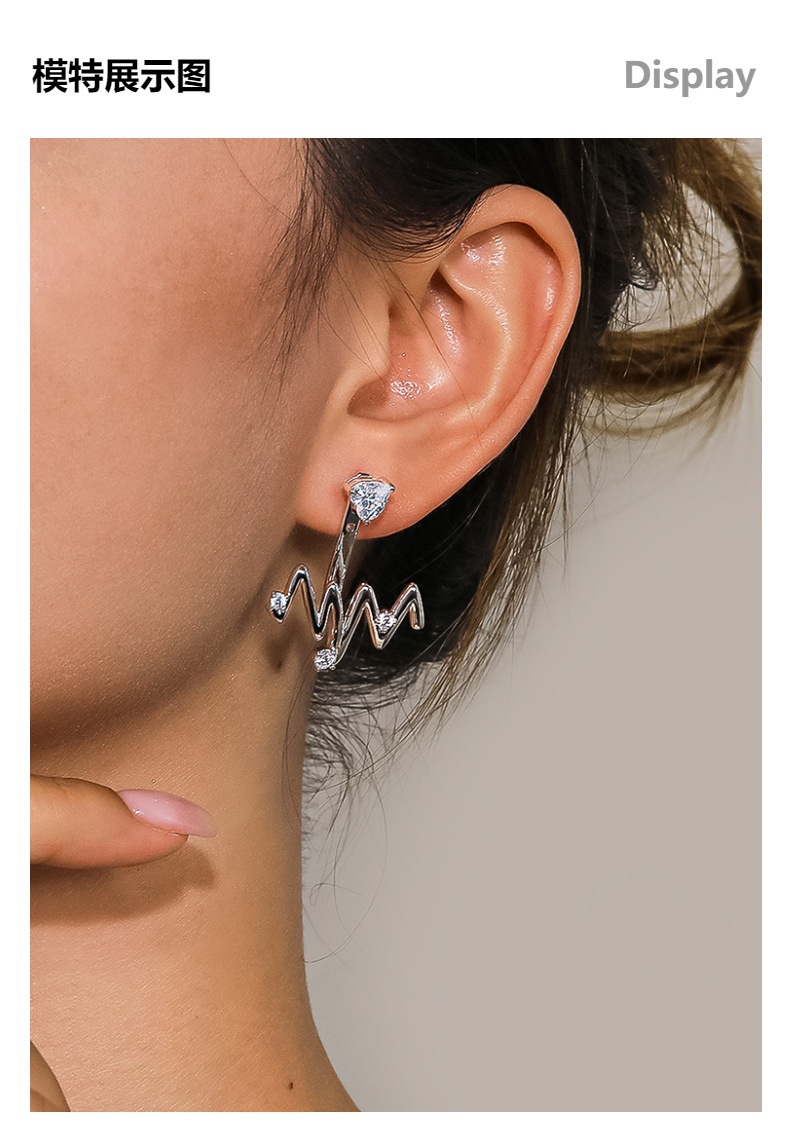 Cross-border Europe and the United States personality simple lightning wave earrings diamond 5A zircon heartbeat frequency earrings