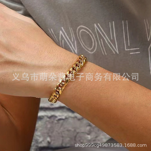 European and American New Hip Hop Cuban Titanium Steel Gold Bracelet Trendy Personalized Hiphop Street Hip Hop Rap Accessories