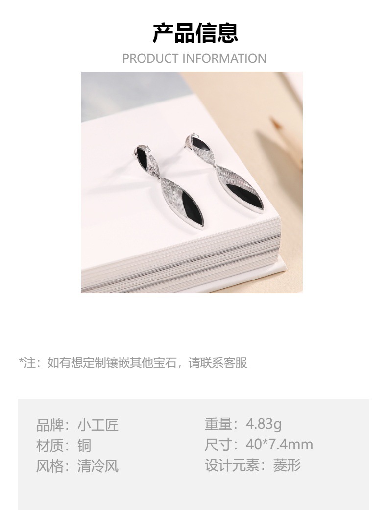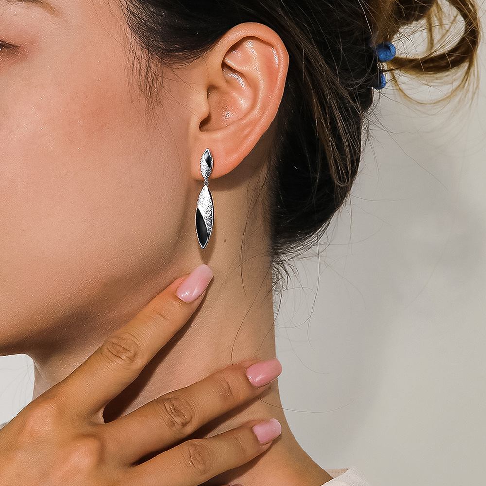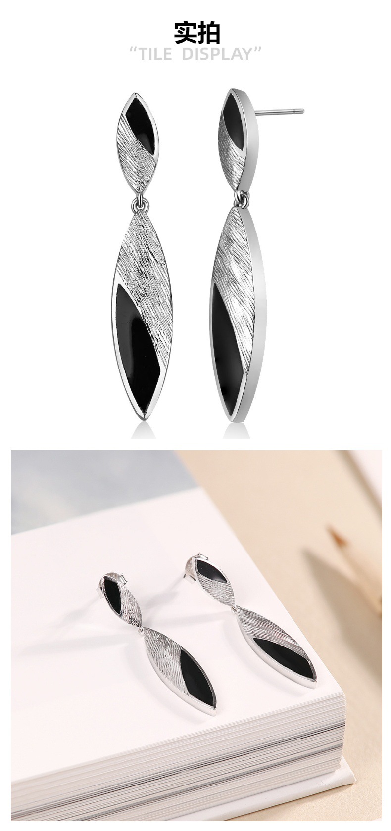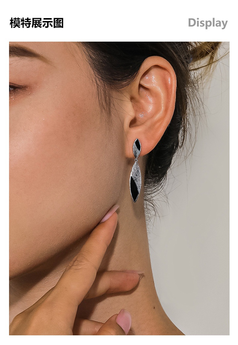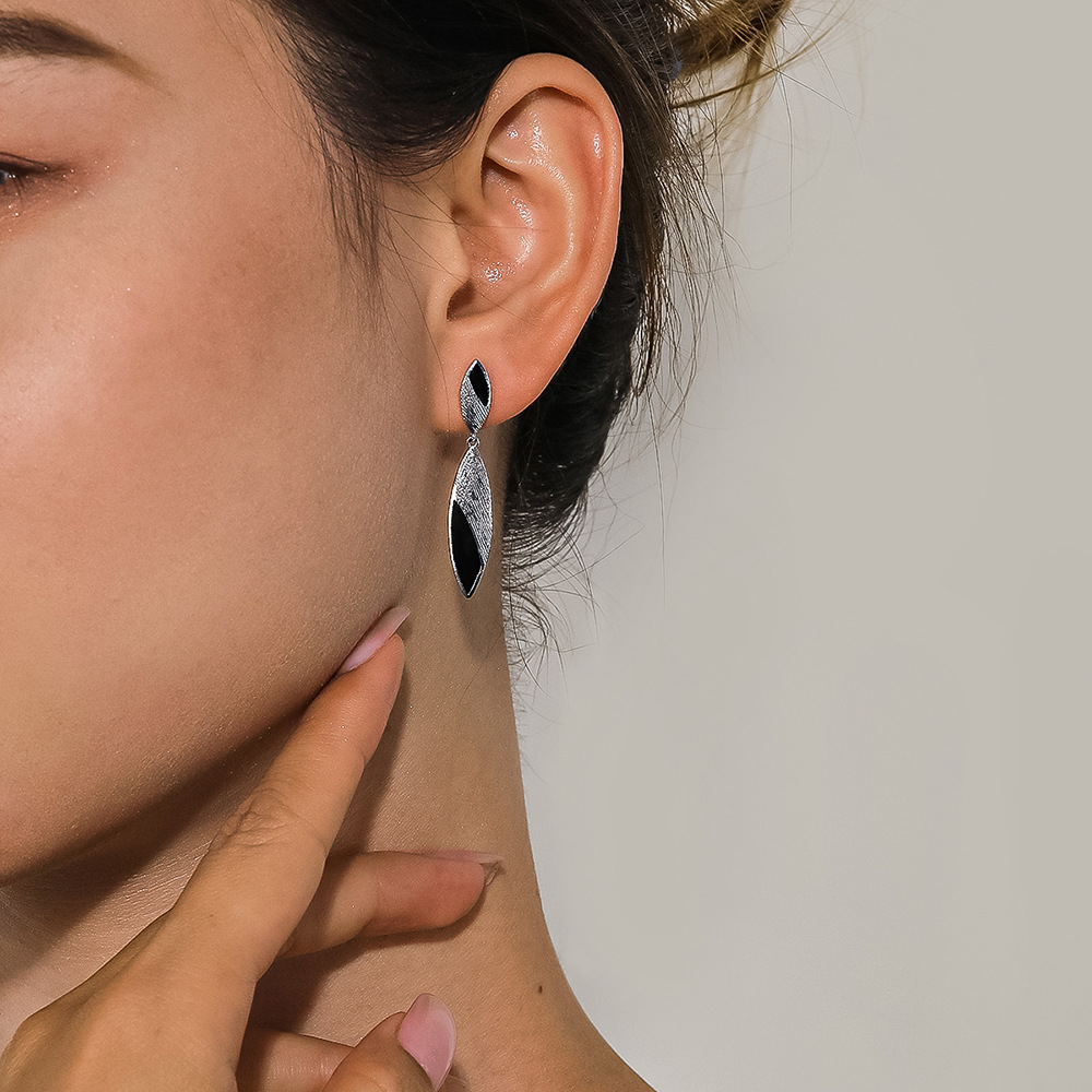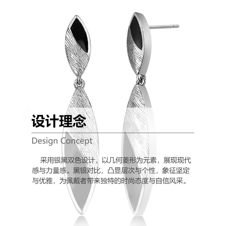 Cross-Border New Diamond-Shaped Silver and Black Brushed Earrings, Personalized Cool Style Earrings, Internet Celebrity Style Tassel Earrings