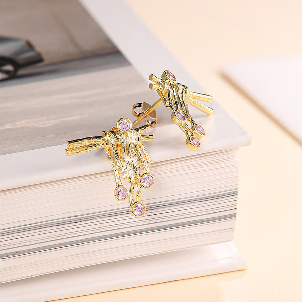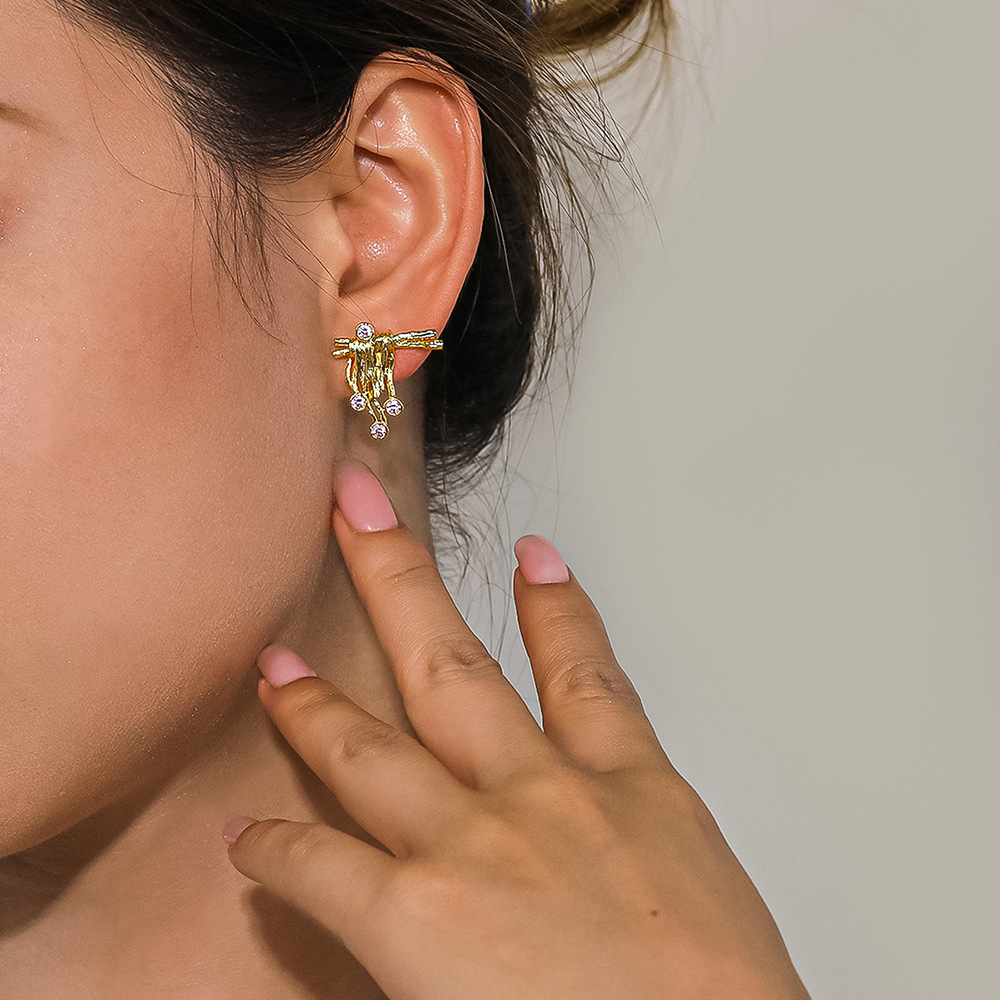 Cross-border Live S925 Sterling Silver Irregular Diamond Earrings Plated with 18k Gold Fashion All-match 5A Zircon Earrings