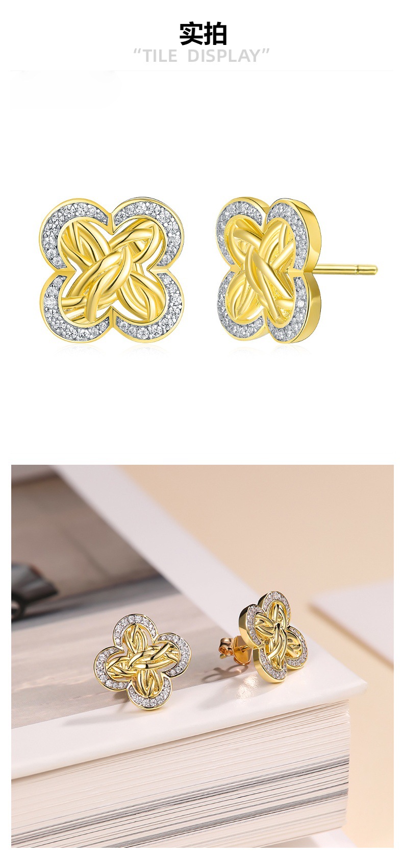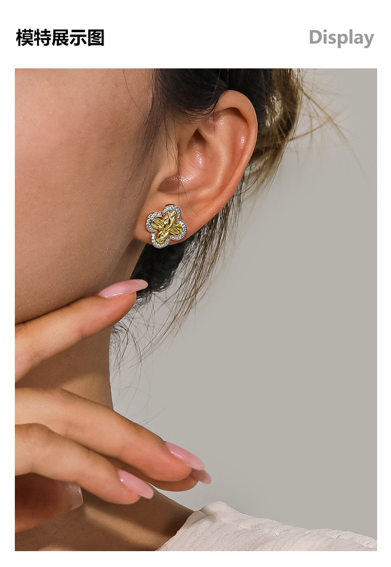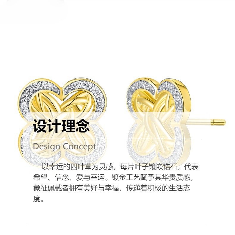 Cross-Border Live Broadcast Hot-Selling Four-Leaf Clover Earrings Plated with 18K Gold, Exquisite Luxury Diamond-Encrusted 5A Zircon Earrings