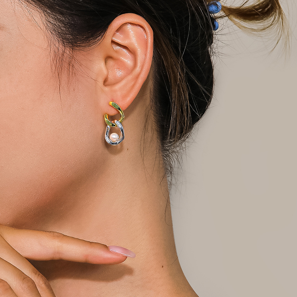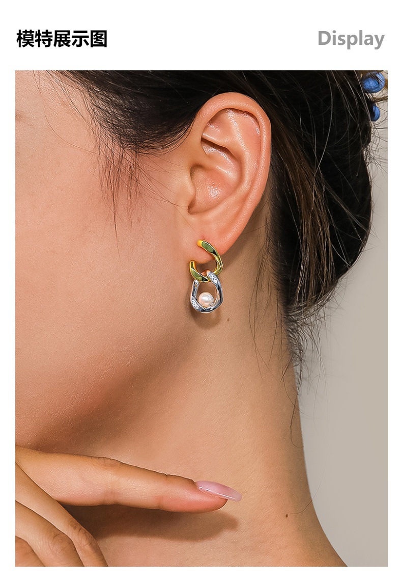 Cross-border Europe and the United States S925 Sterling Silver Color Buckle Earrings Niche Design Diamond 5A Zircon Earrings Bead Earrings