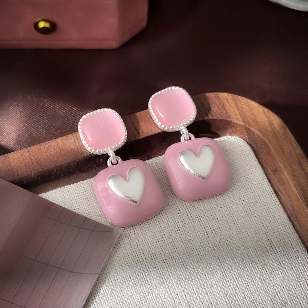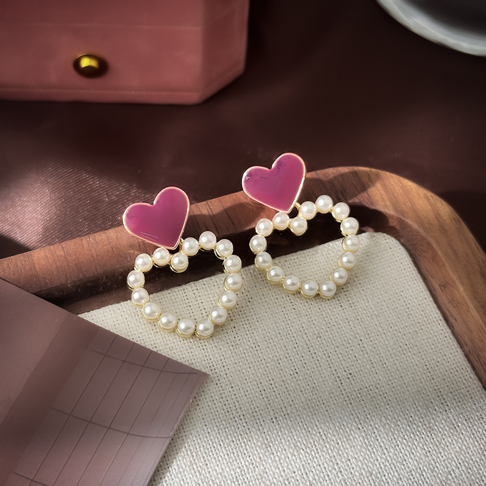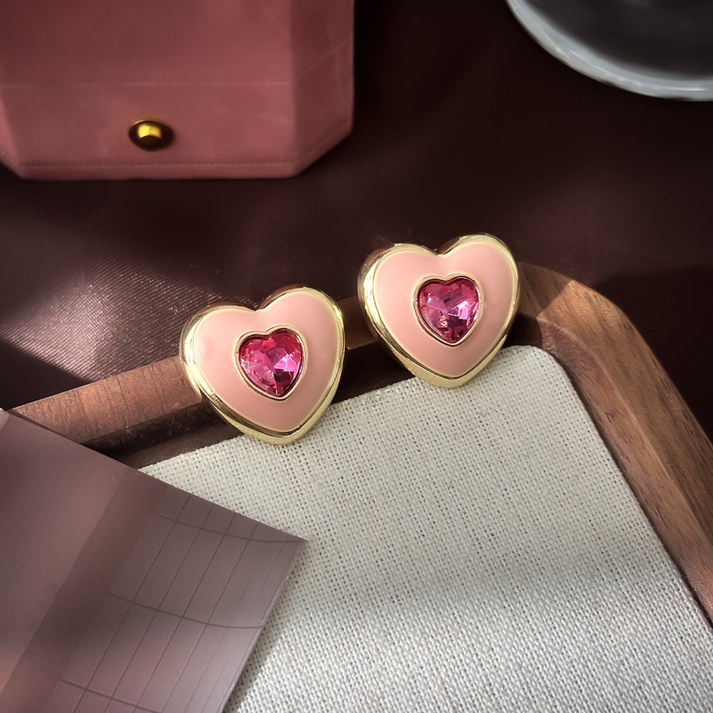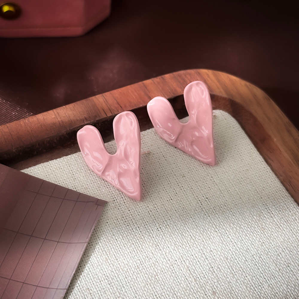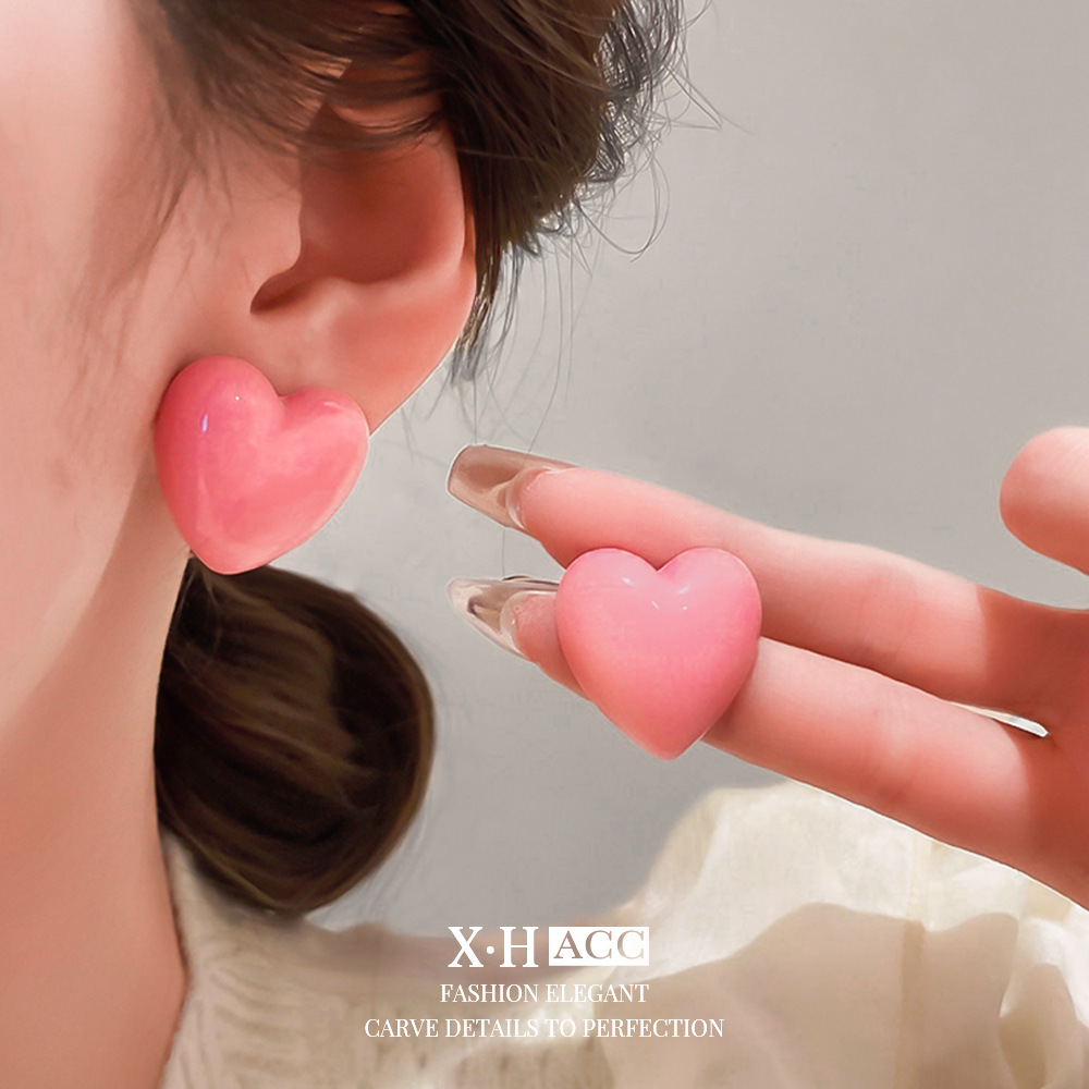 Sweet girl cute pink love earrings fashion personality heart-shaped earrings niche simple Joker earrings wholesale