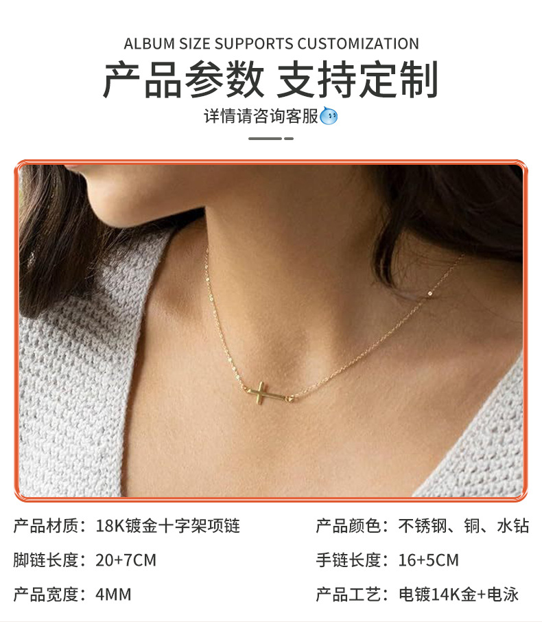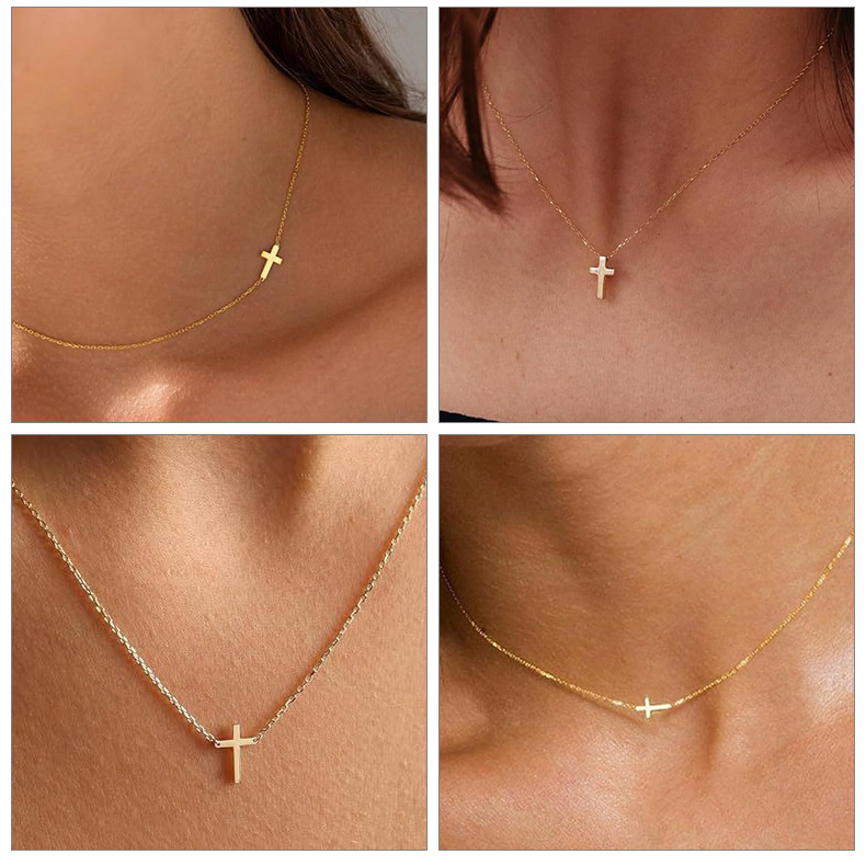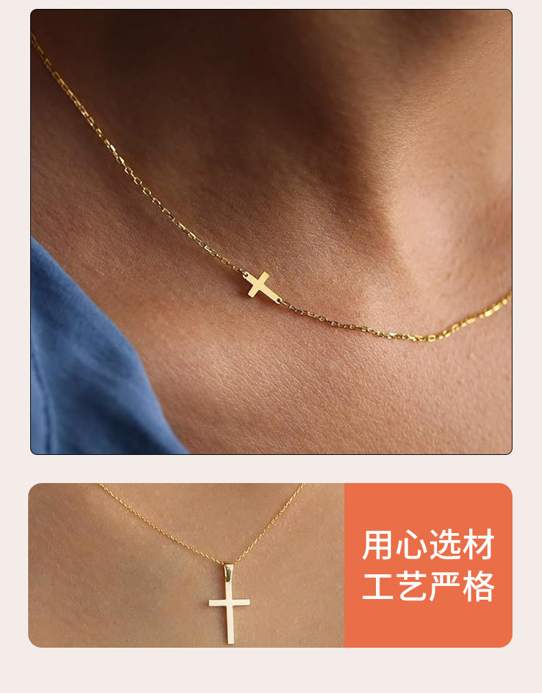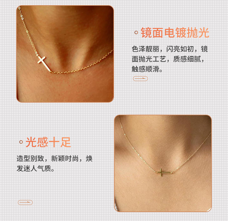 European and American Best-Selling New Product 14K Gold-Plated Cross Necklace Women's Clavicle Chain Simple and Stylish Commuter Jewelry Artistic
