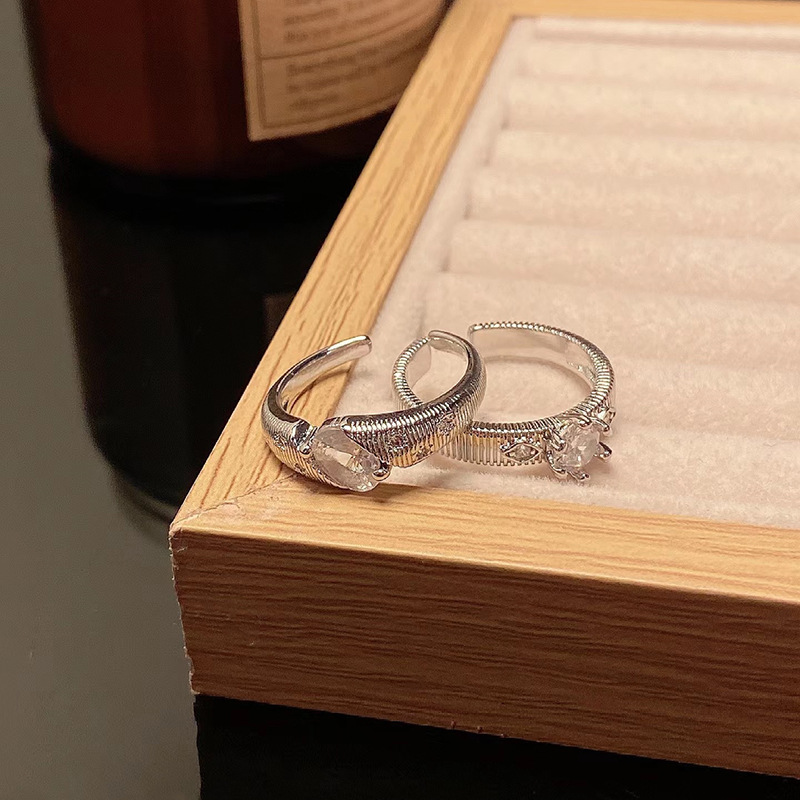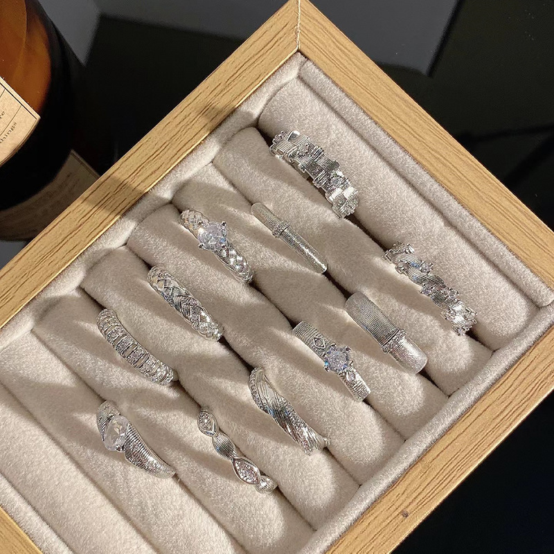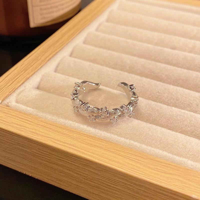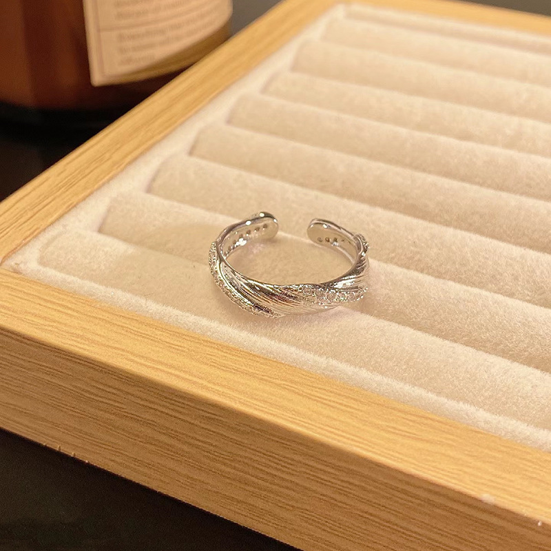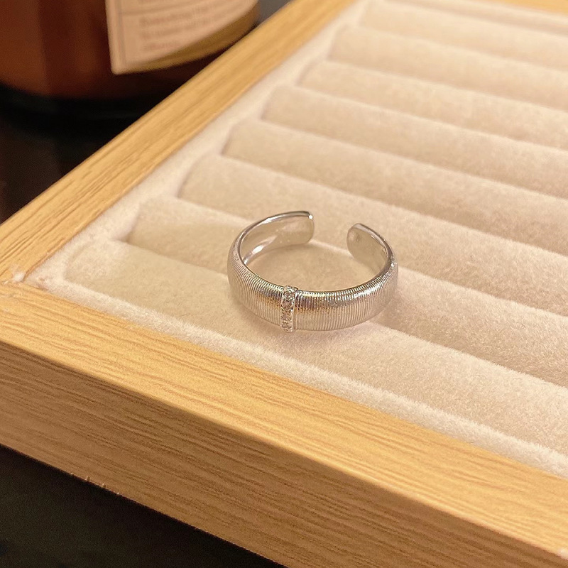 Mid-ancient Style High-grade Texture Flash Diamond Retro Wiredrawing Thin Wide Edition Ring Women's Light Luxury Niche Design Ring Accessories
