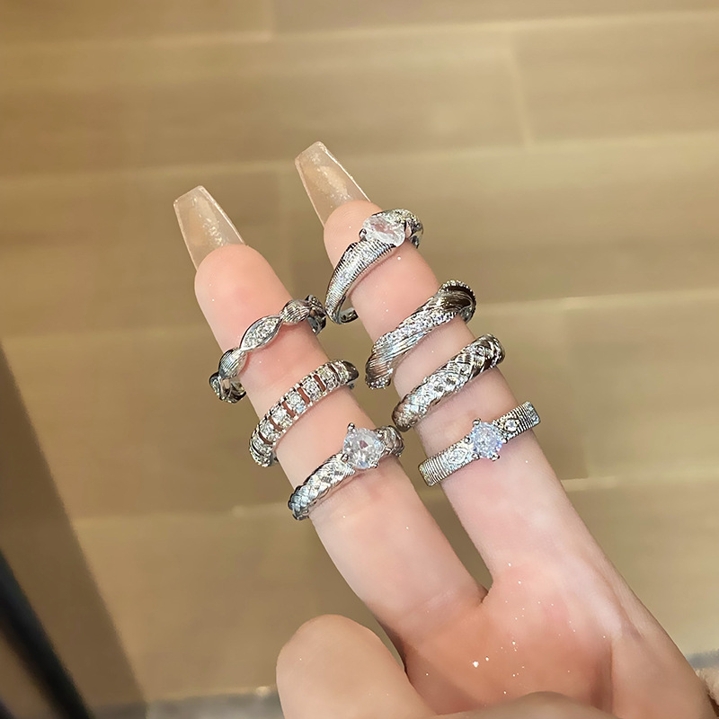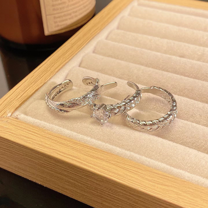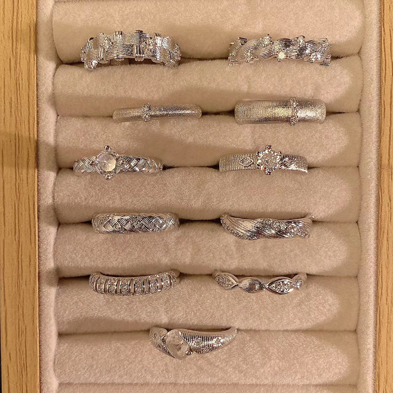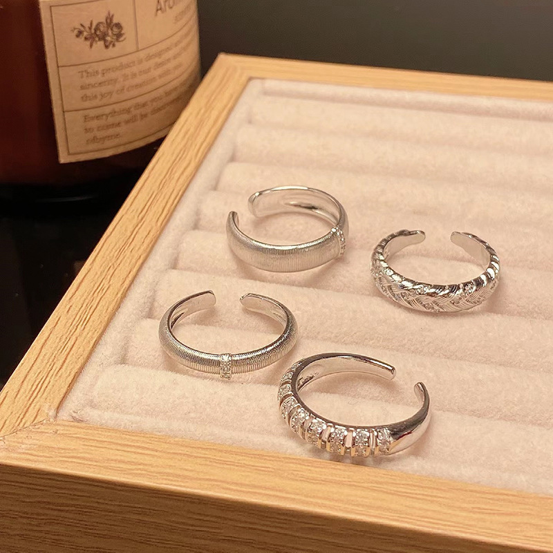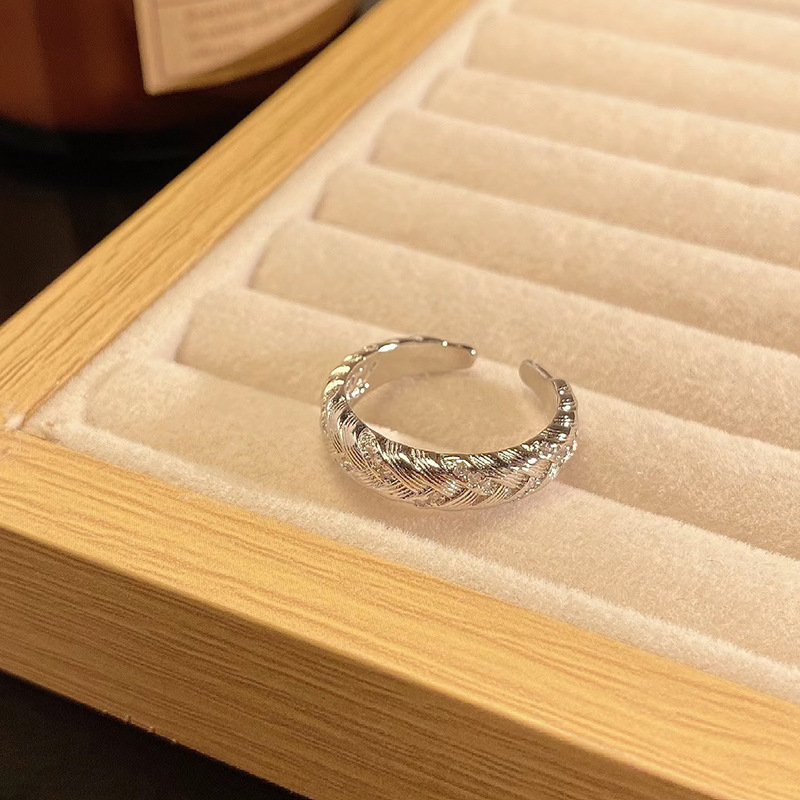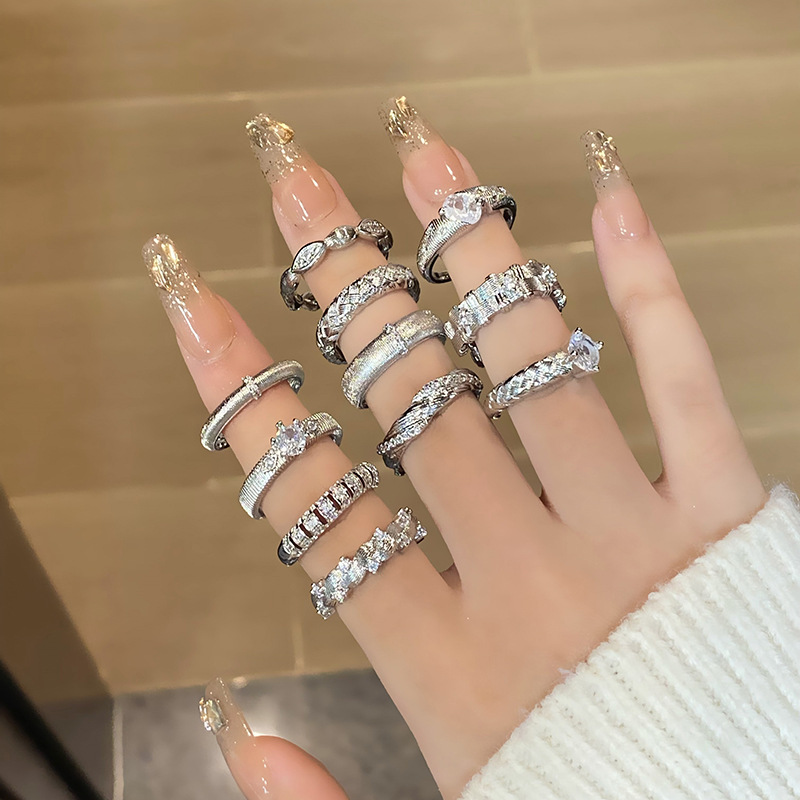 Mid-ancient Style High-grade Texture Flash Diamond Retro Wiredrawing Thin Wide Edition Ring Women's Light Luxury Niche Design Ring Accessories