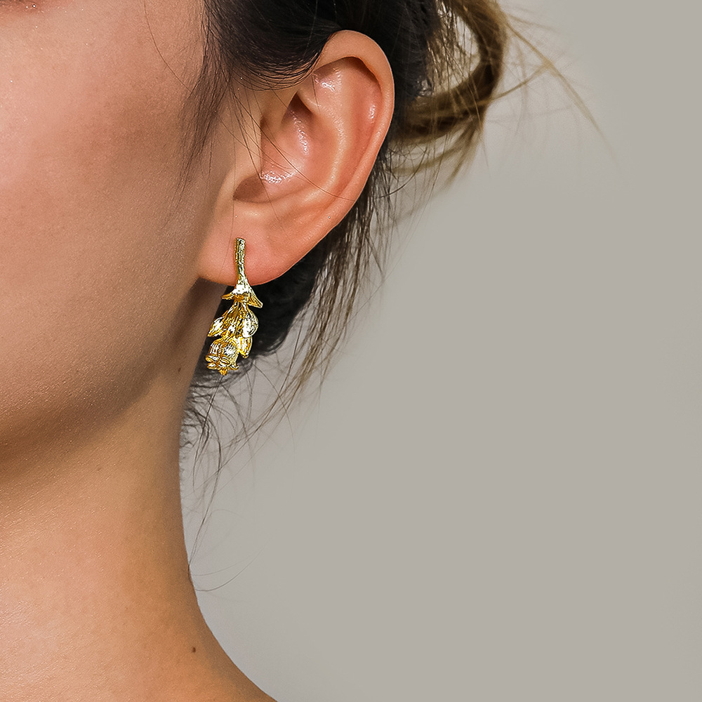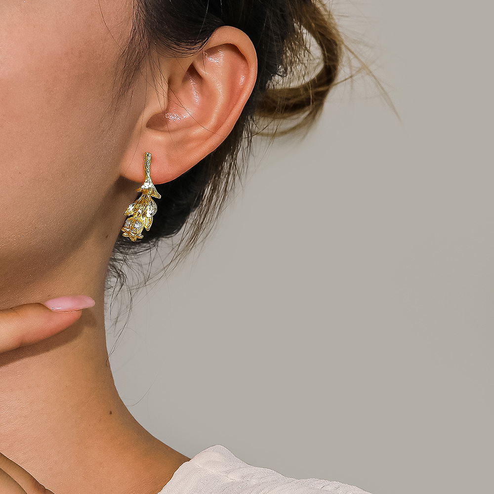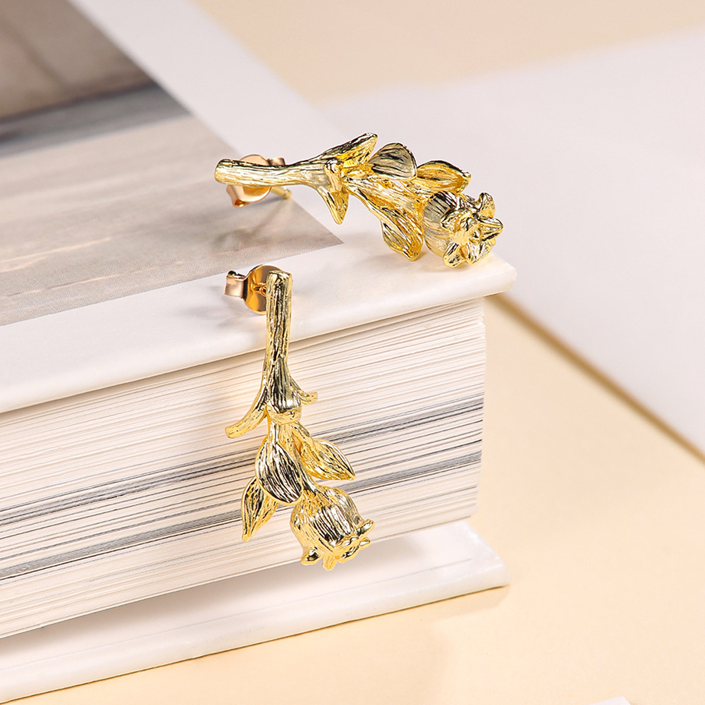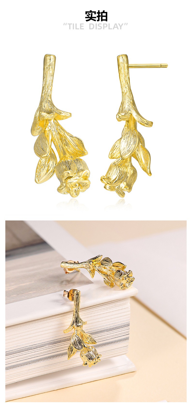Cross-border e-commerce new S925 sterling silver lily orchid earrings plated 18k gold fashion temperament earrings