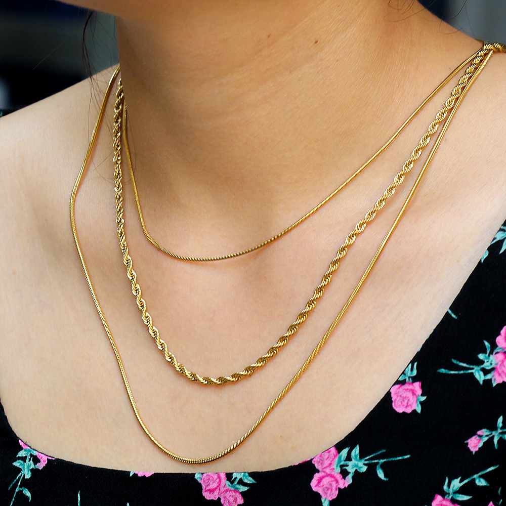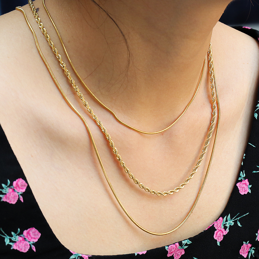 European and American ins blogger with sexy three-layer twist snake bone titanium steel electroplating 18K gold high color necklace