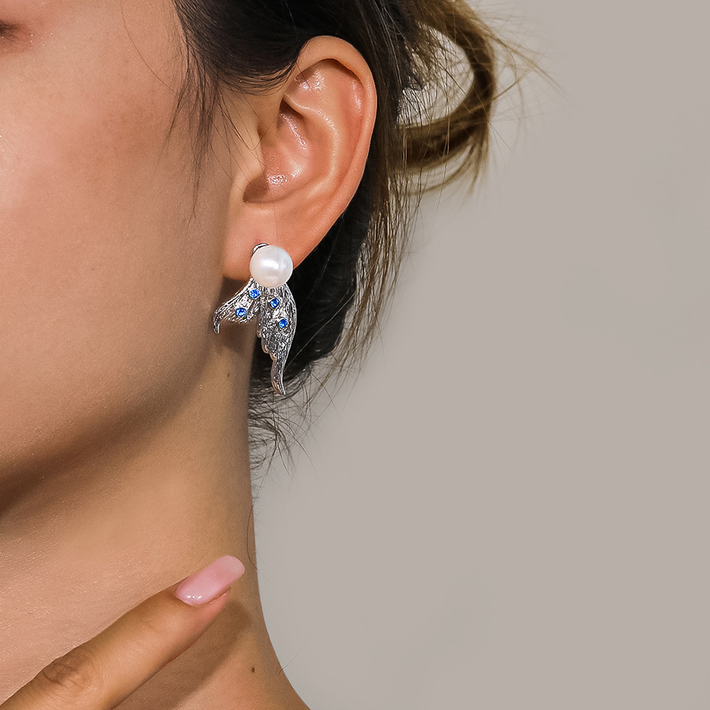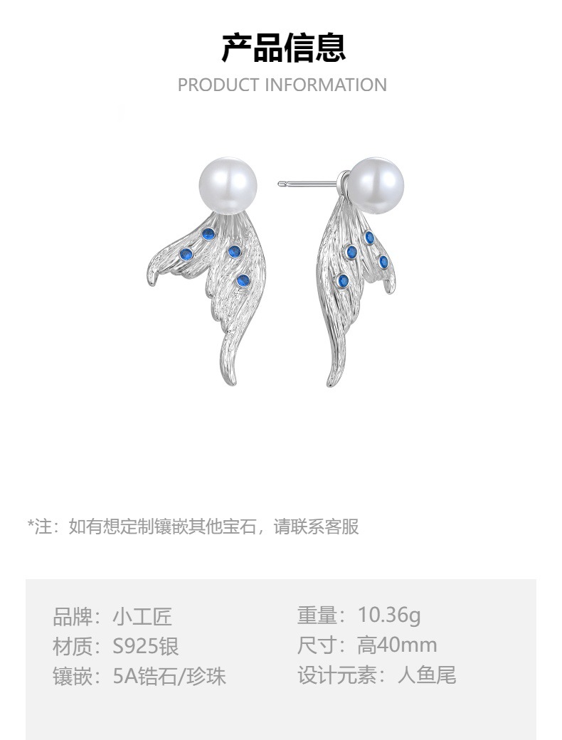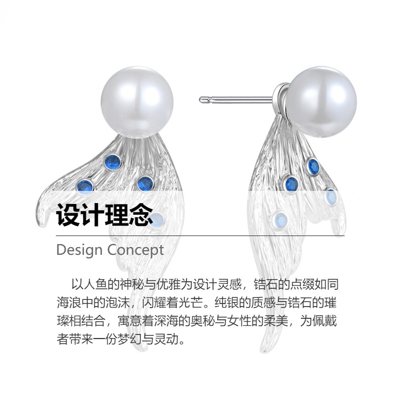 Cross-border Live Hot Sale S925 Sterling Silver Mermaid Pearl Earrings Fashion Simple Diamond-encrusted Blue 5A Zircon Earrings