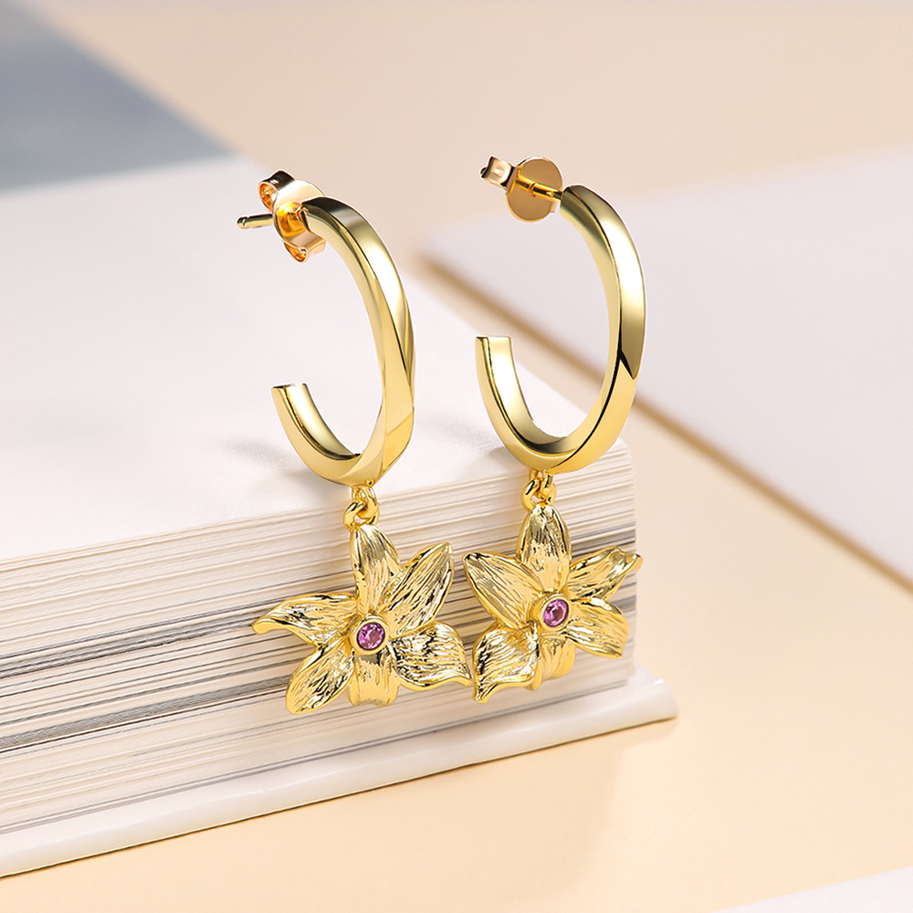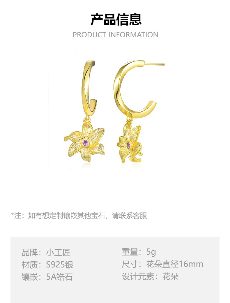 Cross-border New S925 Sterling Silver Diamond Flower Earrings Plated 18K Gold Fashion All-match Purple 5A Zircon Earrings