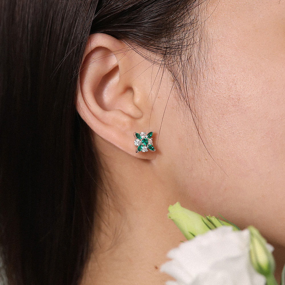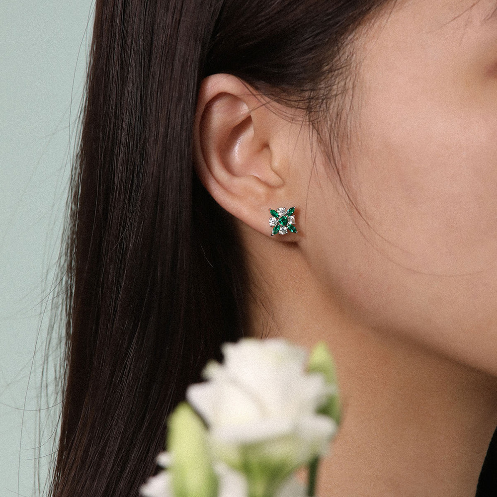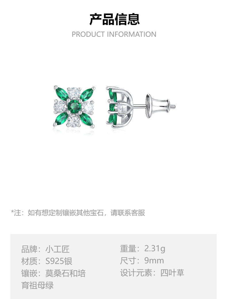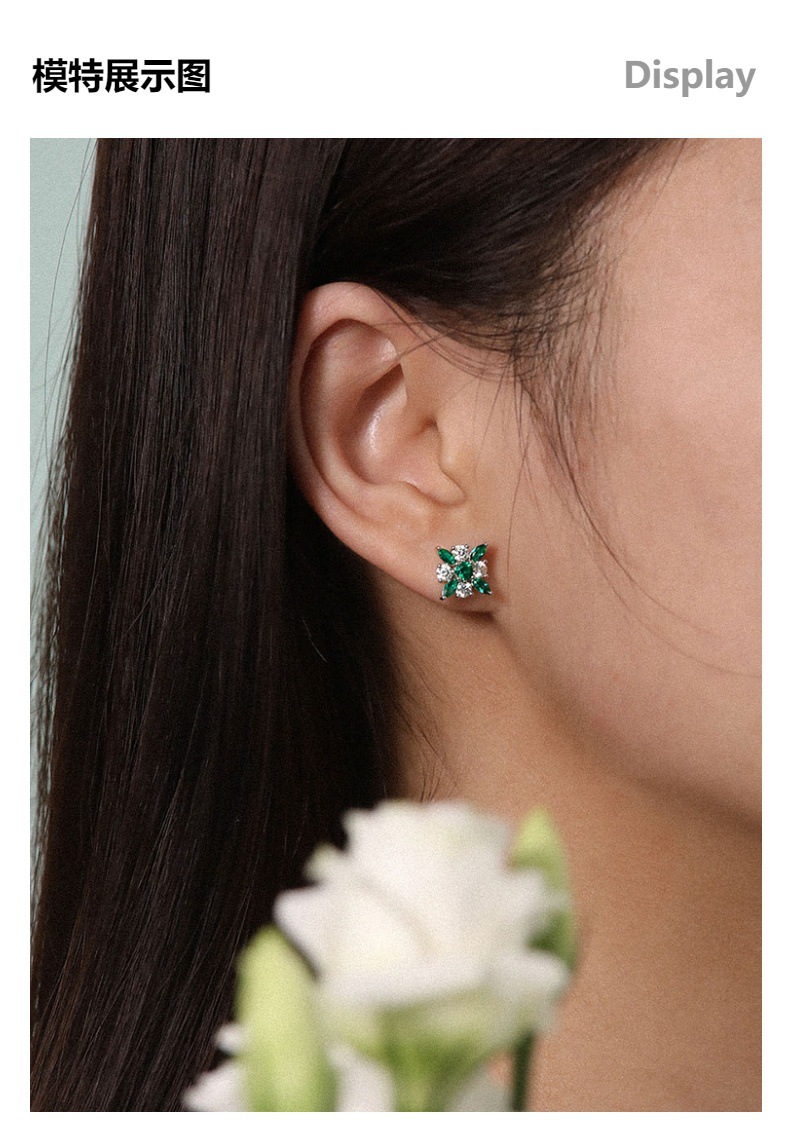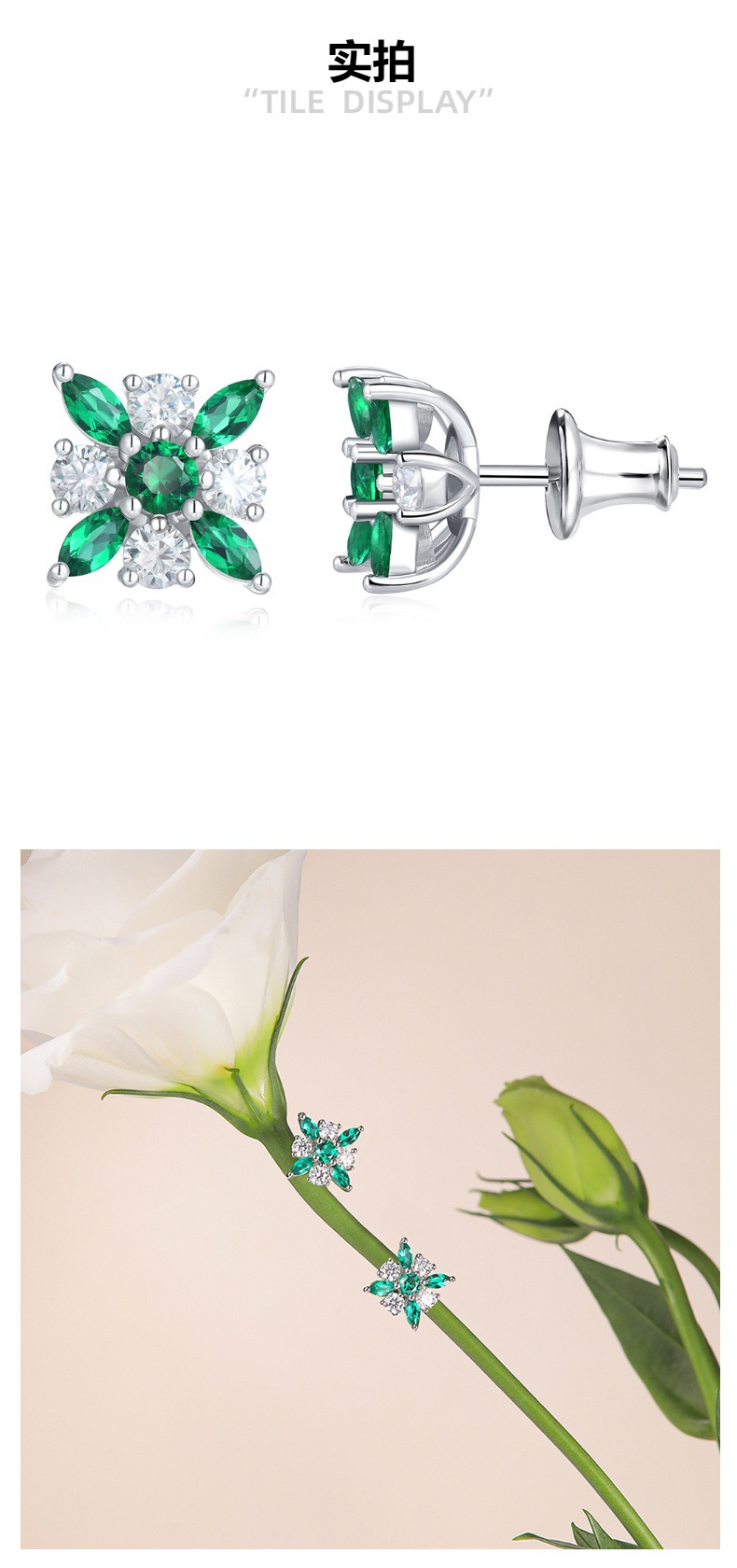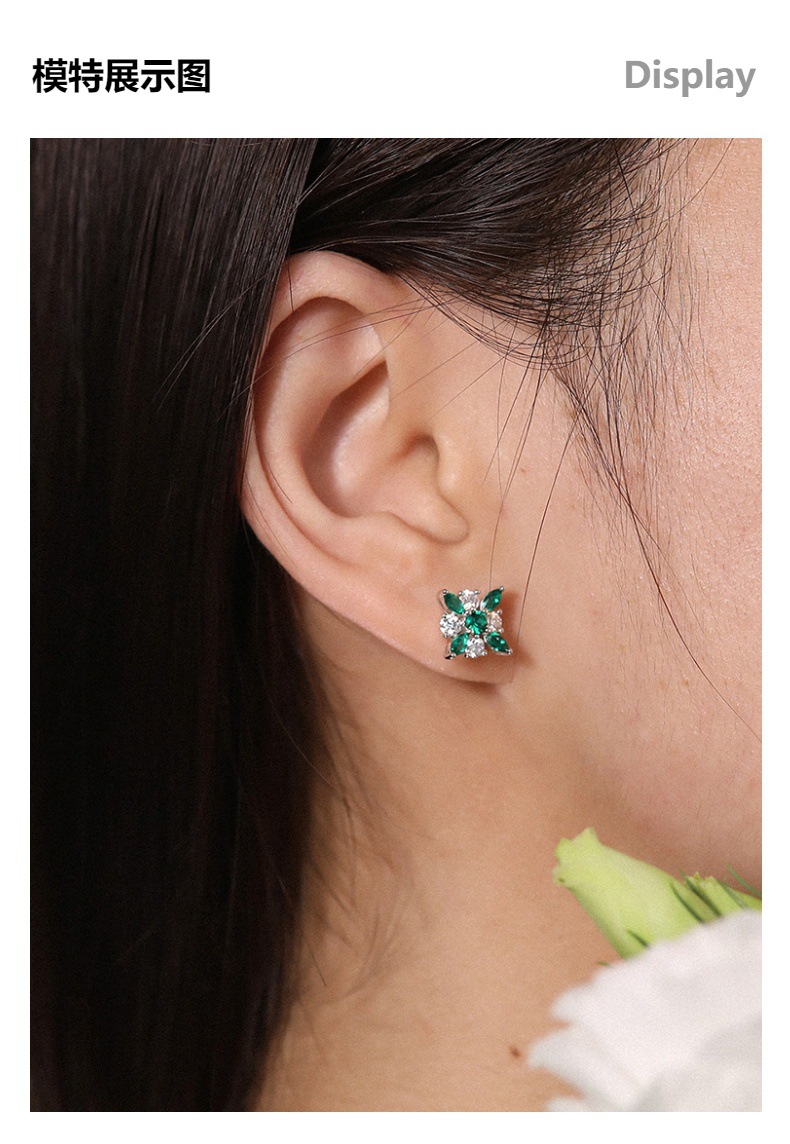 Cross-border New F925 Sterling Silver Cultivated Emerald Earrings Luxury Elegant Four-leaf Clover Moissanite Color Treasure Earrings